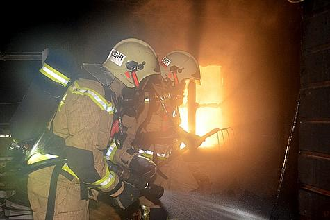 Am nächsten Tag bei der Nachuntersuchung mussten weitere Nachlöscharbeiten durchgeführt werden.