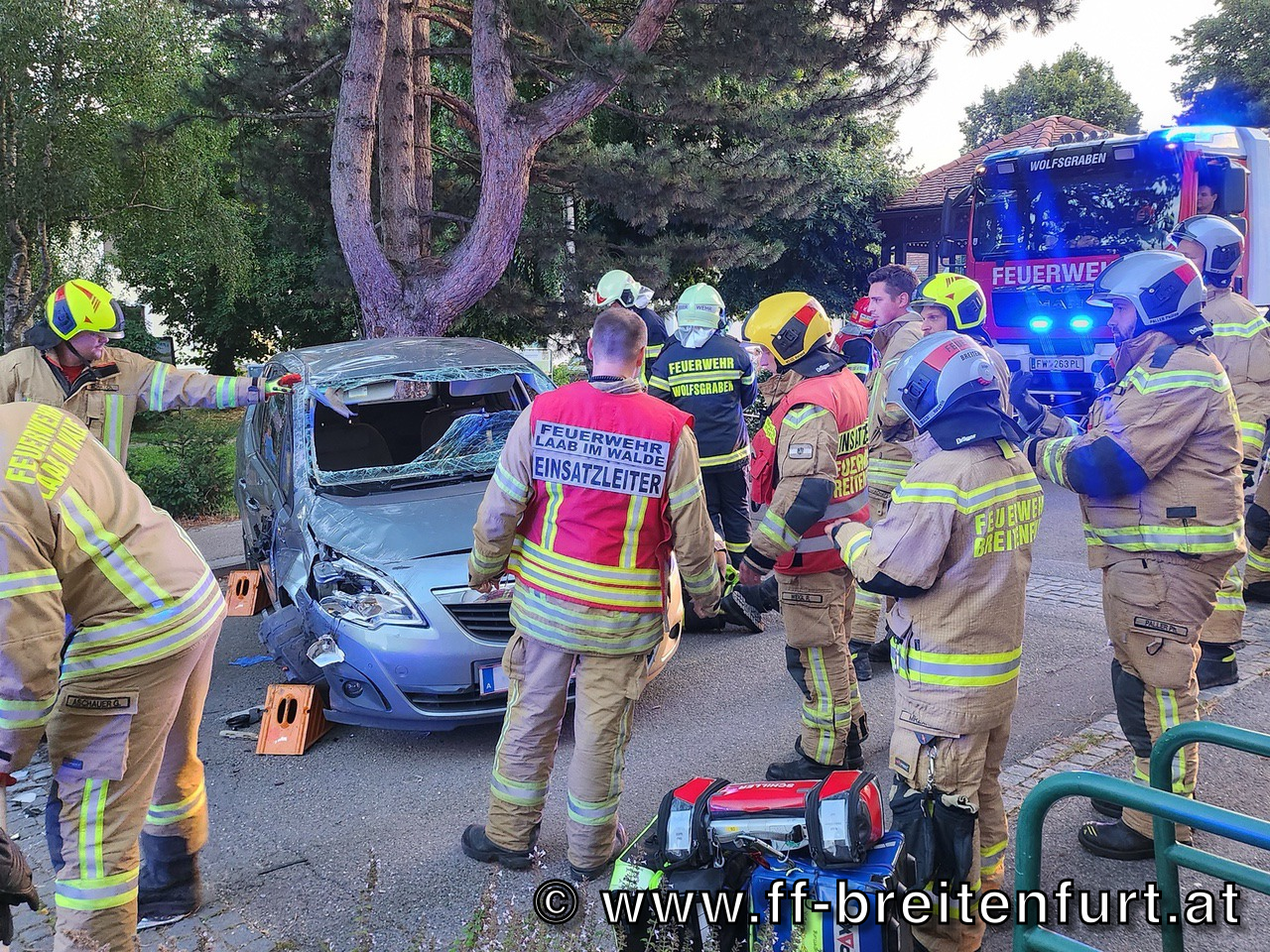 Beim Eintreffen der Einsatzkräfte war die Person bereits befreit und konnte dem Rettungsdienst übergeben werden. Gemeinsam mit den Einsatzkräften der FF Wolfsgraben unterstützten wir die Mannschaft der FF Laab im Walde beim Aufstellen des Unfallfahrzeuges sowie beim Entfernen der beschädigten Fahrzeuge.