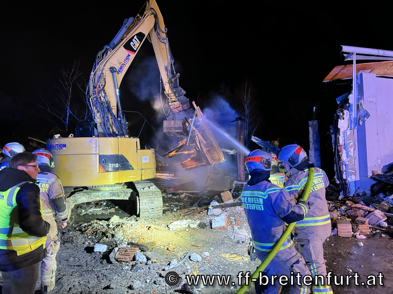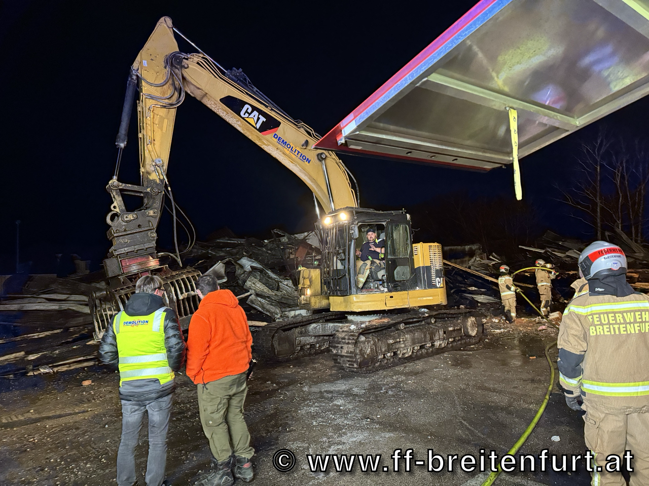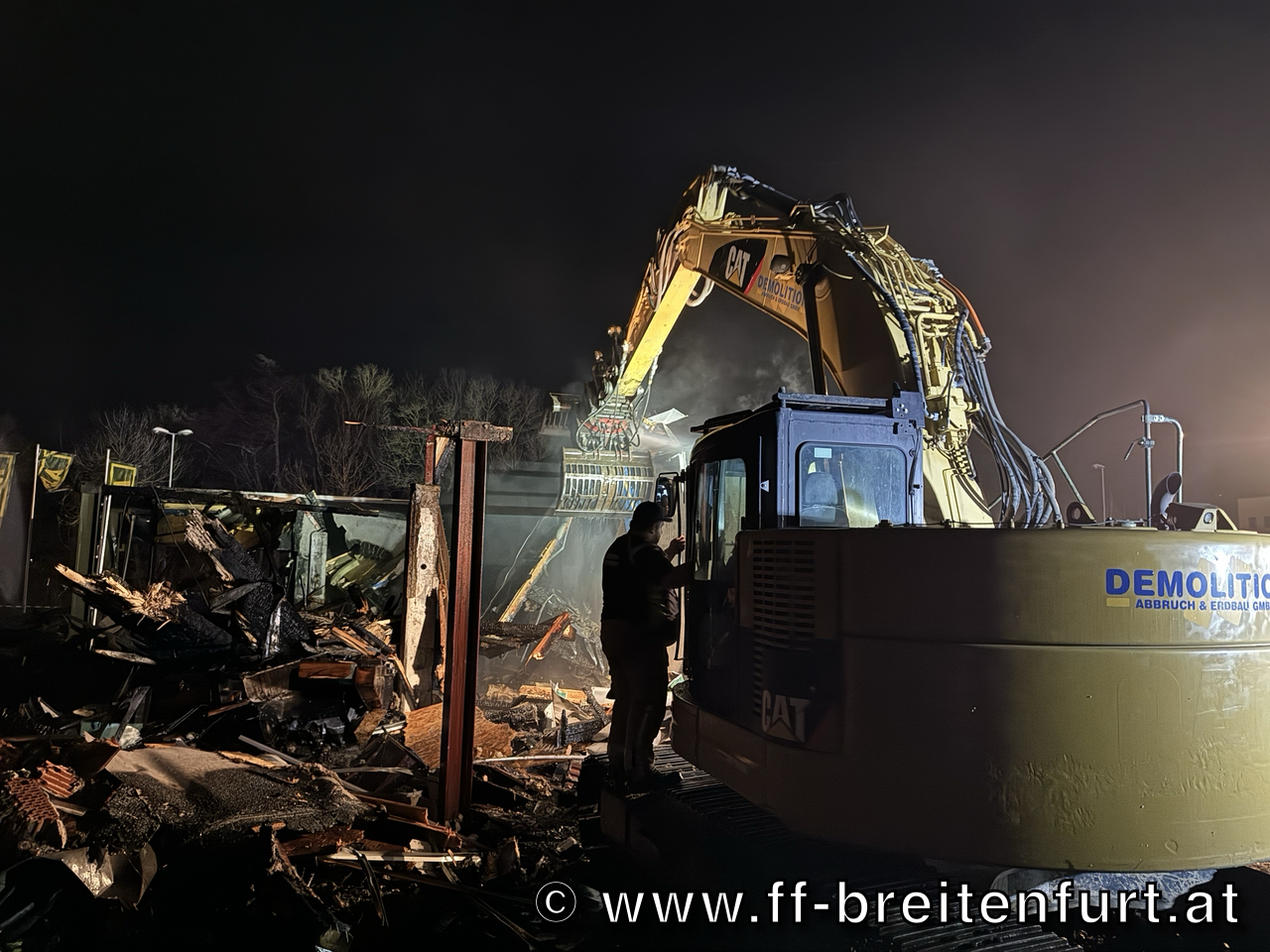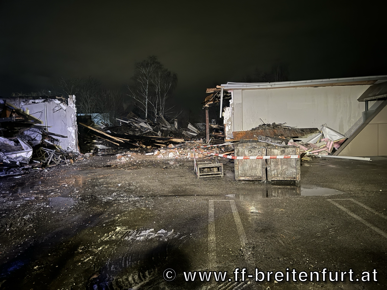 Am Mittwoch, dem 17. Jänner 2024, wurde die Freiwillige Feuerwehr Breitenfurt zur bereits ausgebrannten BILLA-Filiale gerufen. Infolge verbliebener Glutnester kam es im Dachbereich sowie in der noch stehenden Wand erneut zu einer starken Rauchentwicklung. Mittels Bagger der Firma Demolition wurde das Dach abgetragen, die Glutnester wurden mit einem C-Rohr abgelöscht und die betroffenen Bereiche mittels Wärmebildkamera kontrolliert.