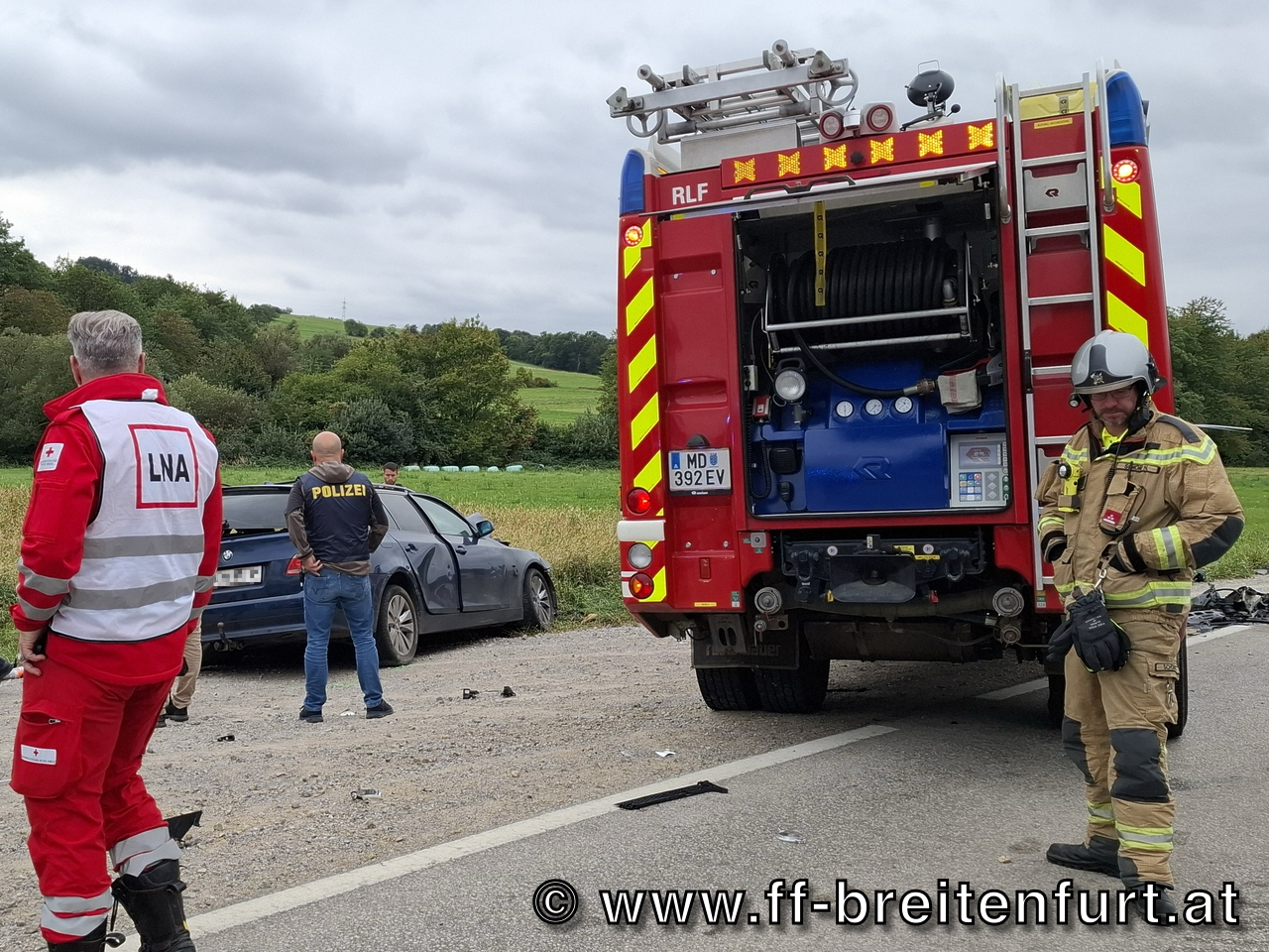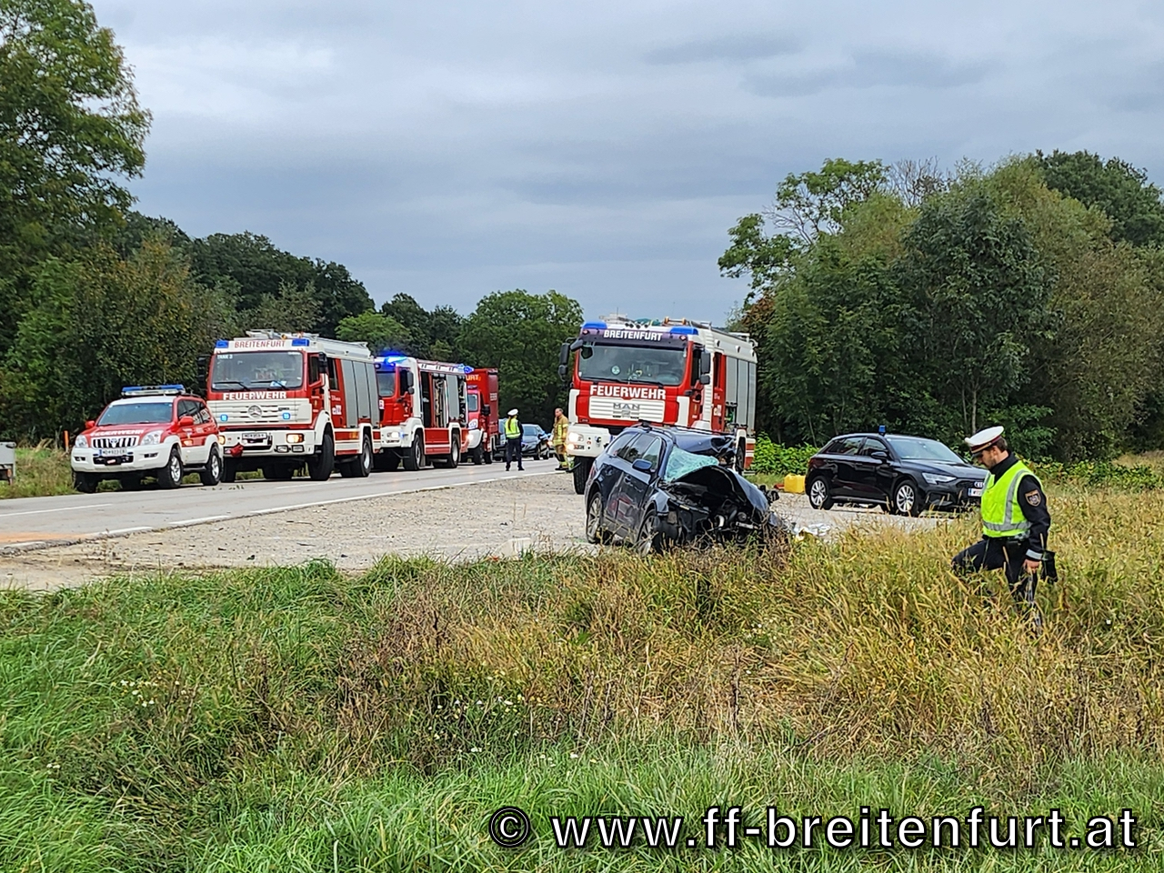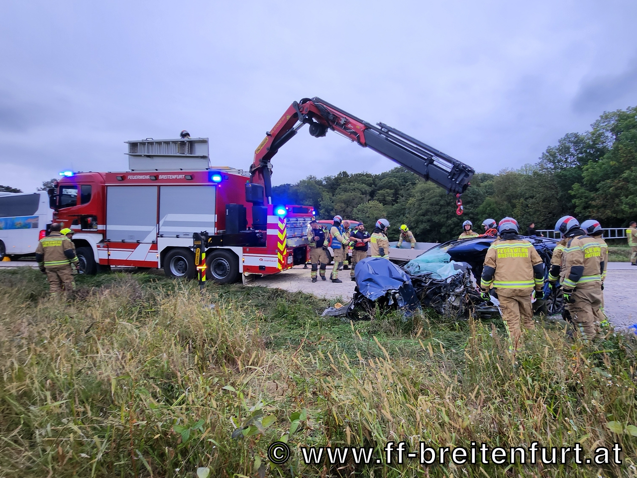 Am Dienstag, dem 23. September 2025, wurde die FF Laab im Walde zu einem schweren Verkehrsunfall (Menschenrettung mehrerer Personen) auf der B13 alarmiert.