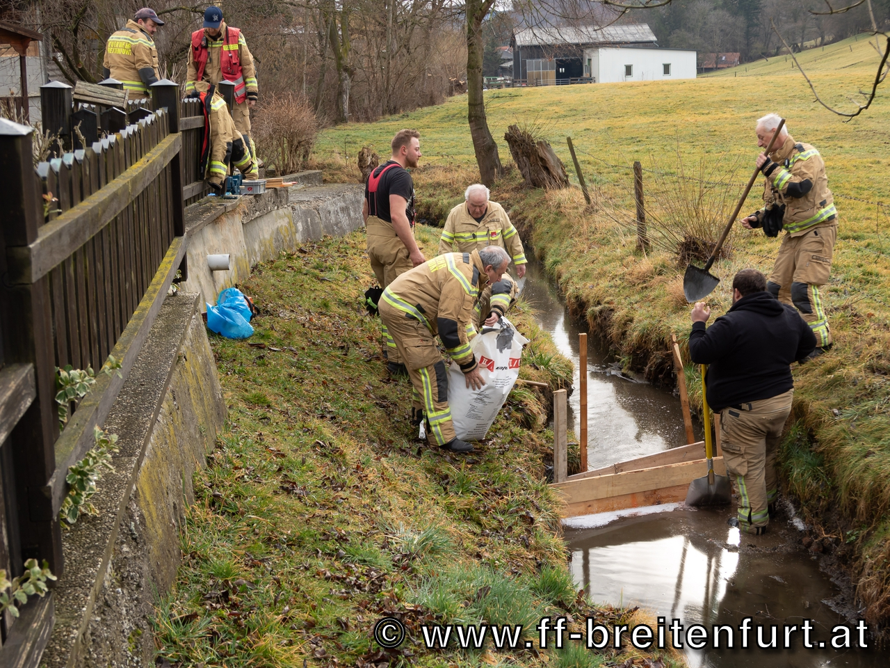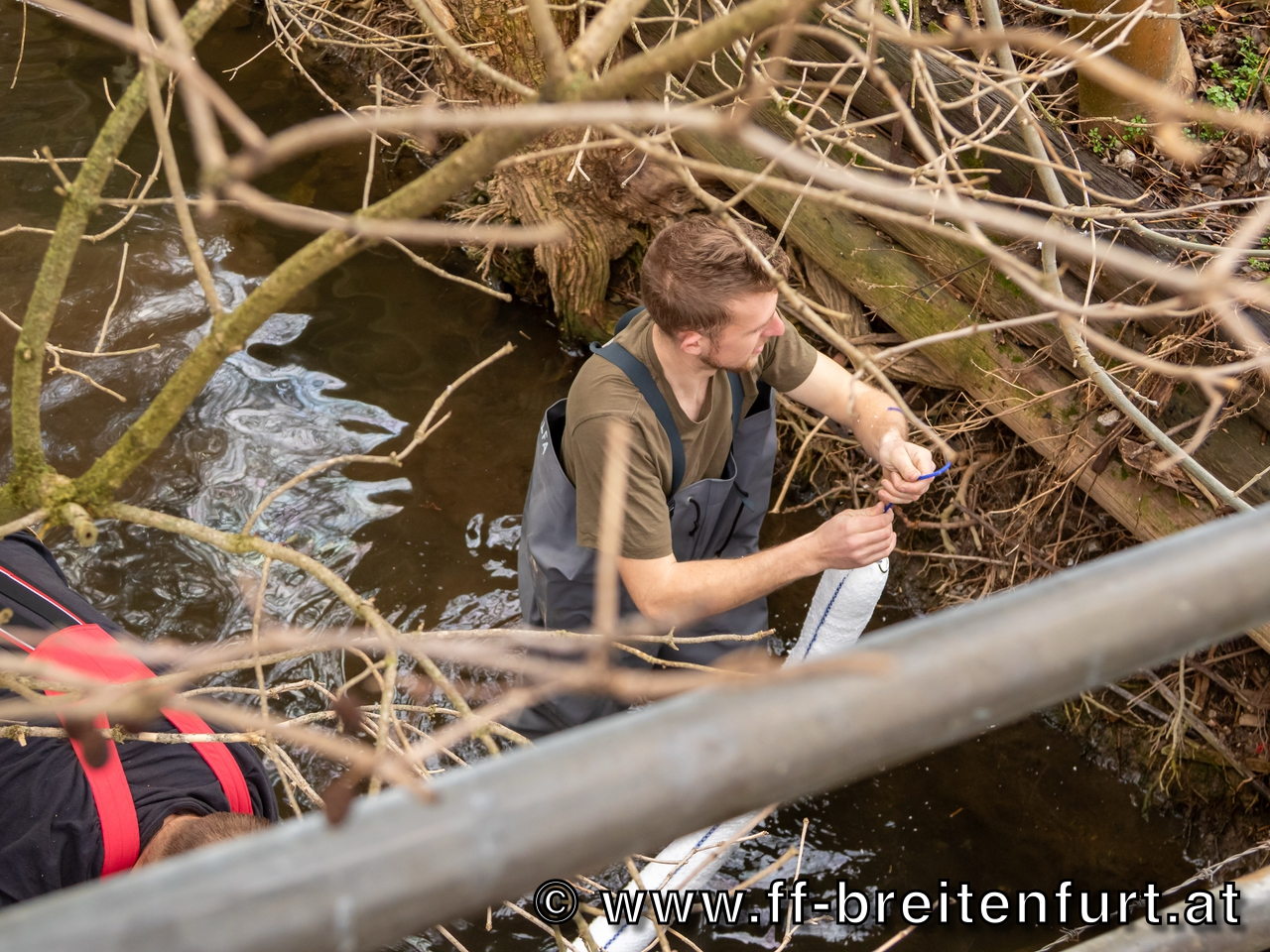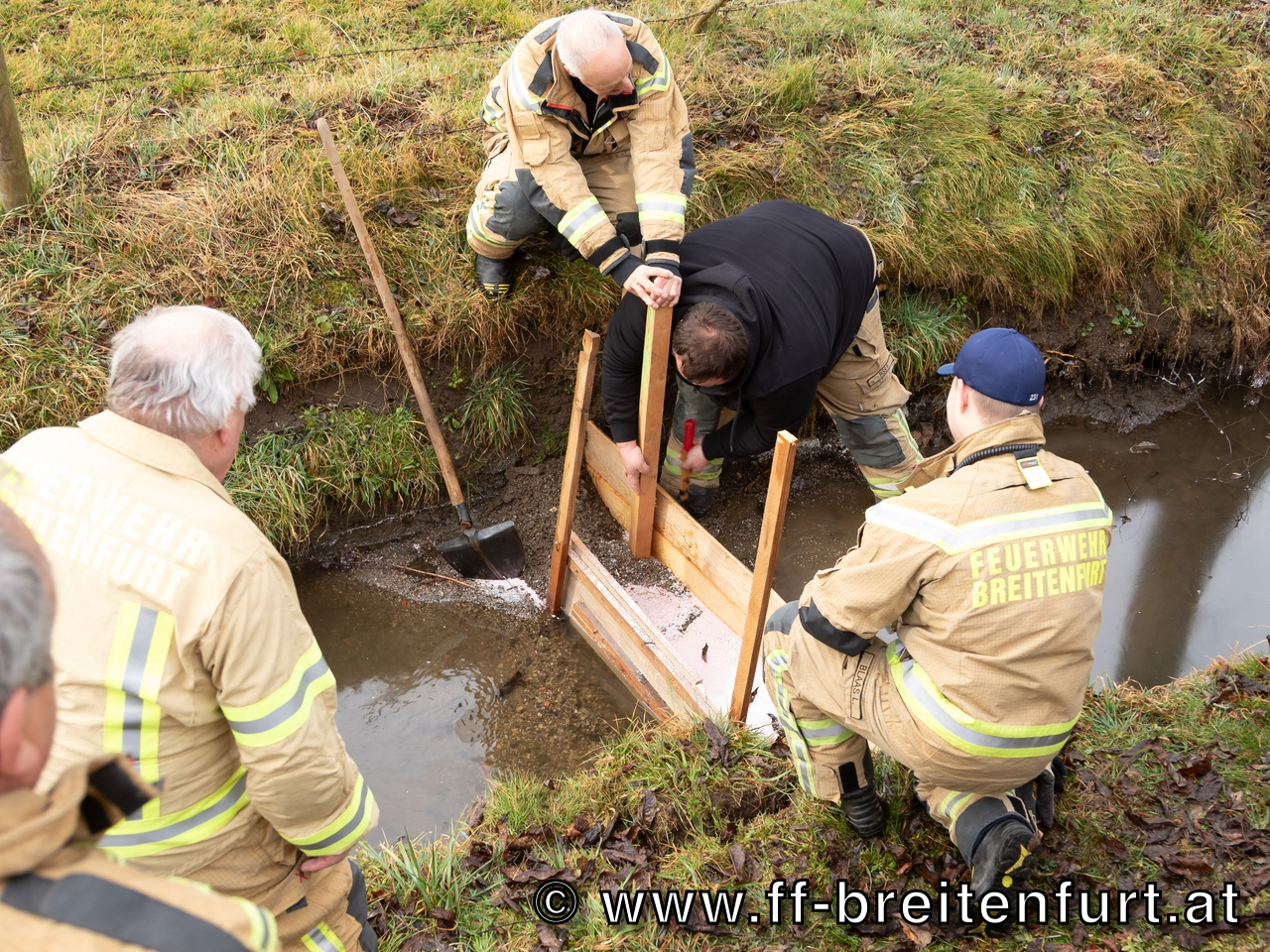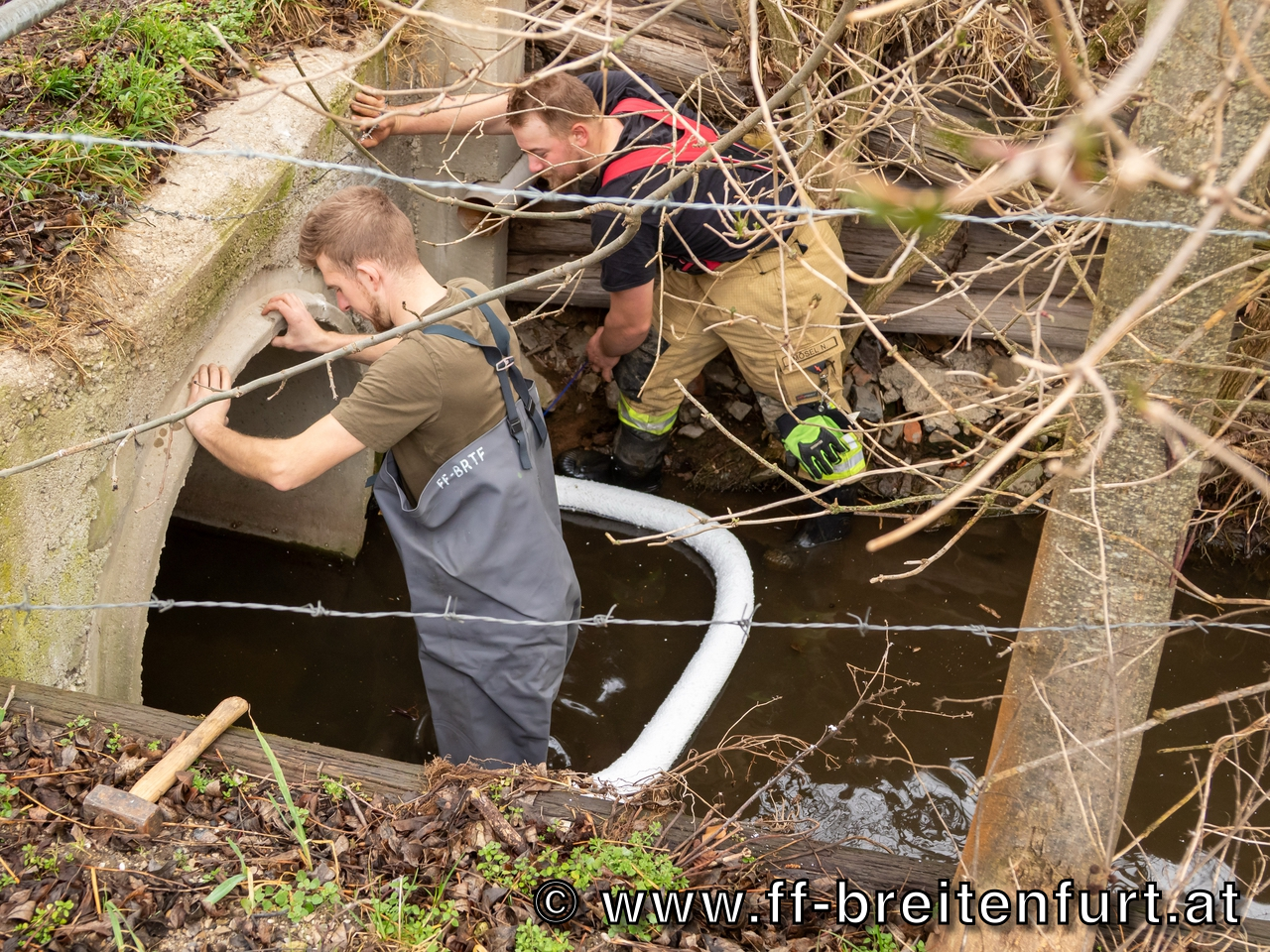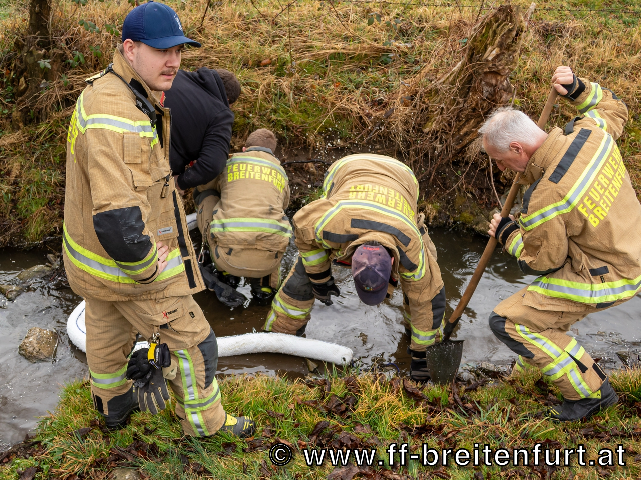 Infolge starker Regenfälle stieg der Wasserstand im Bach deutlich an, wodurch die am Vortag errichtete Oberflächenölsperre überströmt wurde. Dadurch gelangte erneut Heizöl, teils auch bereits im Ölbindemittel gebundenes, bachabwärts und verursachte eine weitere Gewässerverunreinigung.