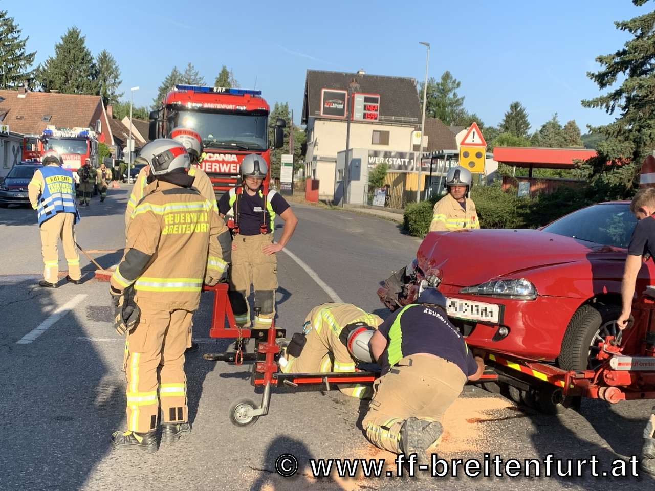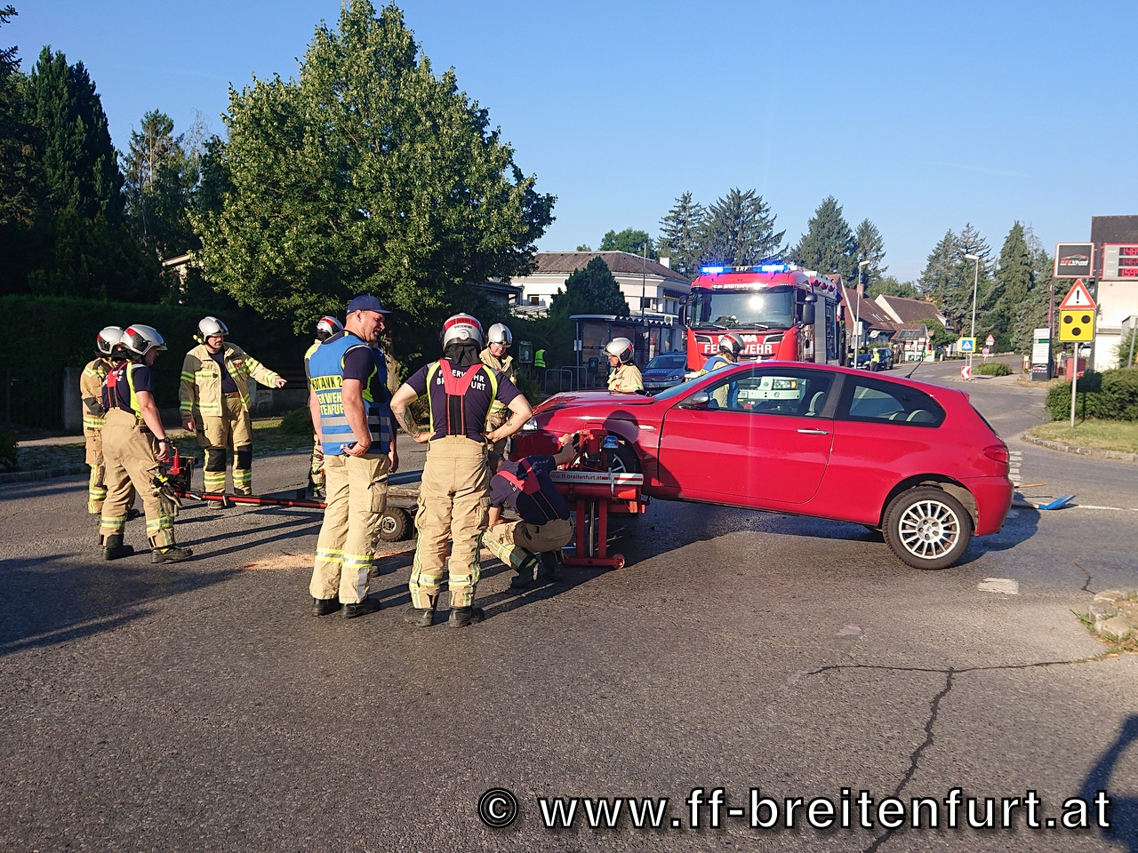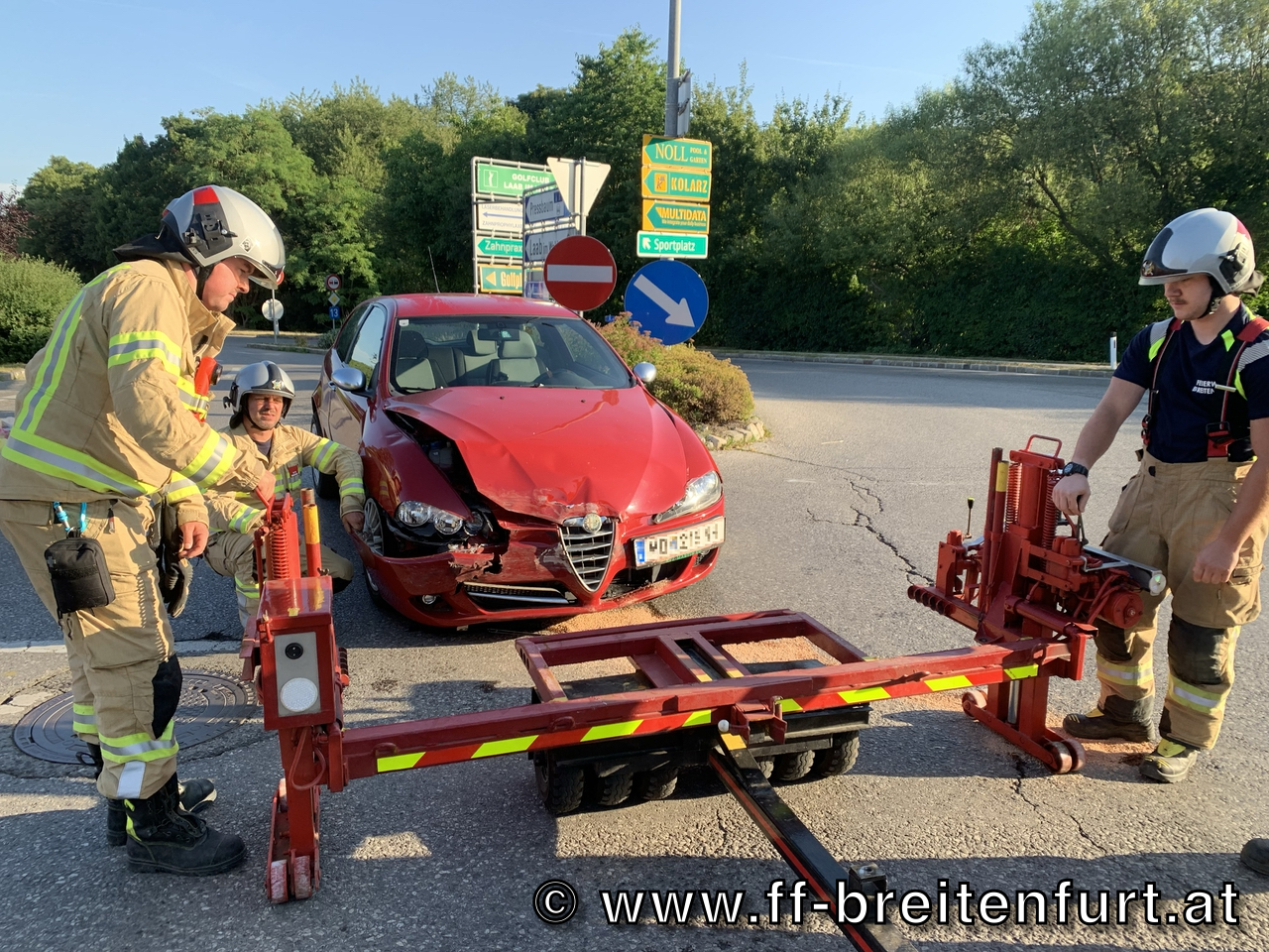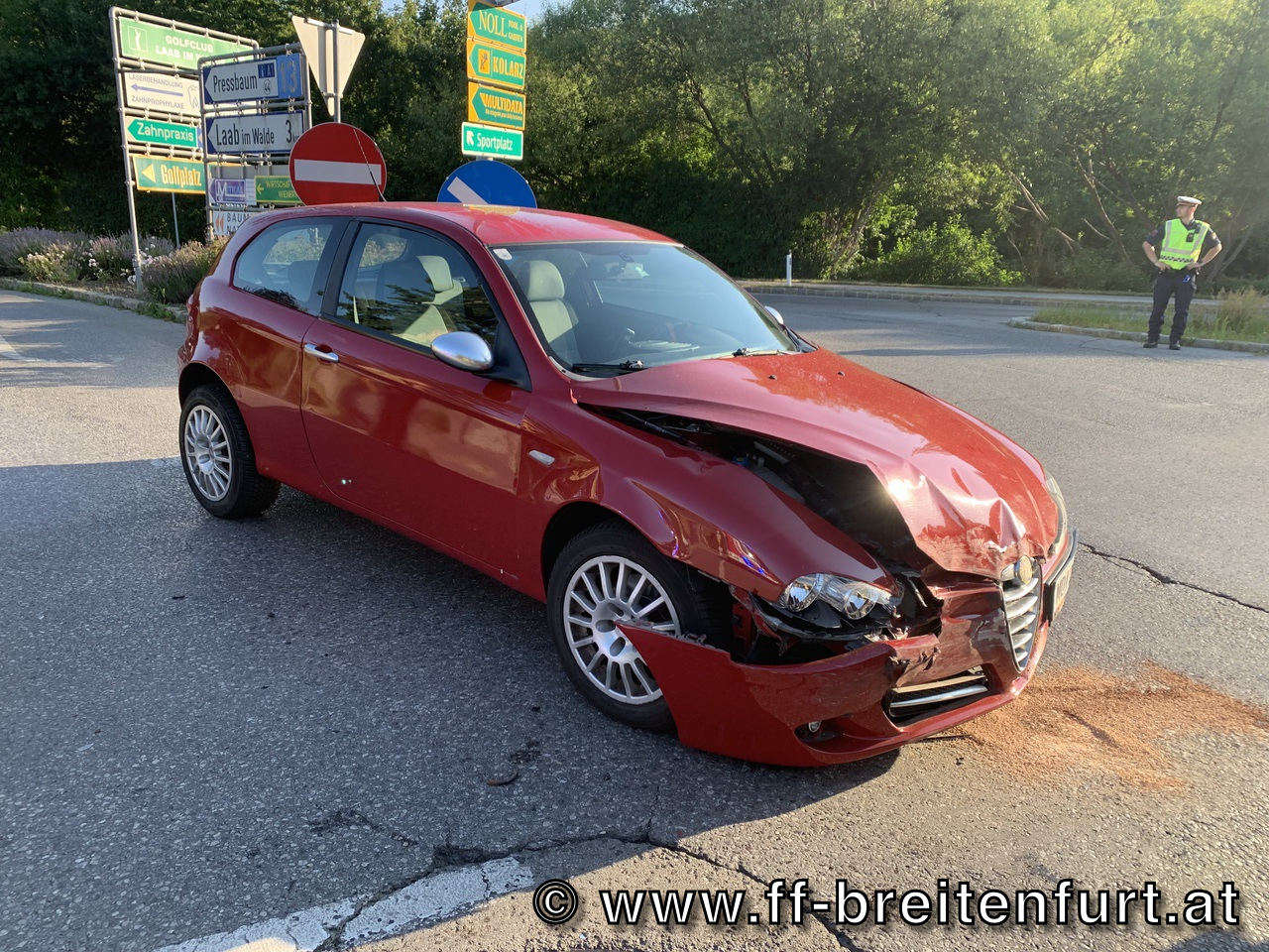 In Folge eines Verkehrsunfalls kam ein PKW fahruntauglich im Kreuzungsbereich zum Stillstand.