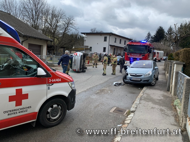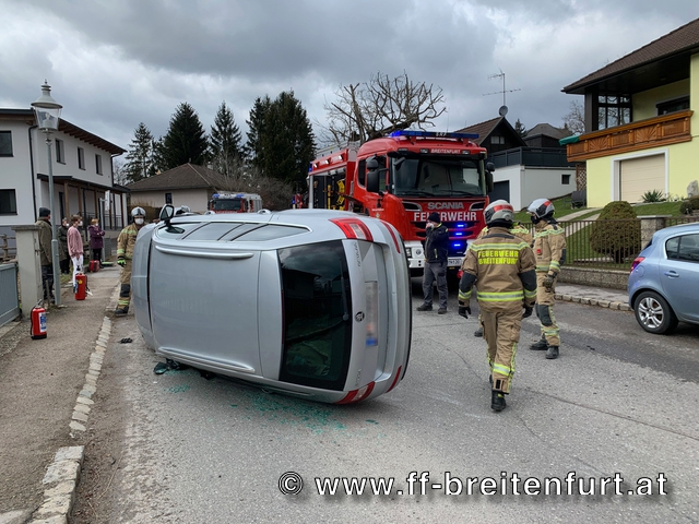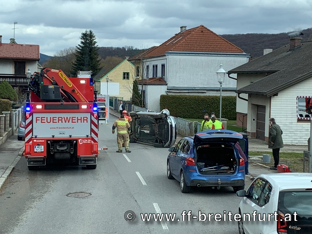 An der Einsatzstelle angekommen konnte zum Glück rasch festgestellt werden, dass keine Personen in den beiden beteiligten Fahrzeugen eingeklemmt waren. Eine, in einem auf der Fahrerseite liegenden PKW, eingeschlossene Person wurden von bereits zufällig vor Ort befindlichen Feuerwehrleuten aus ihrem Fahrzeug unverletzt befreit.