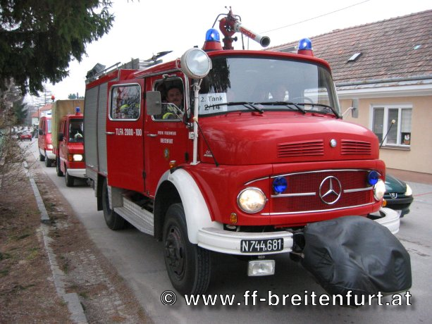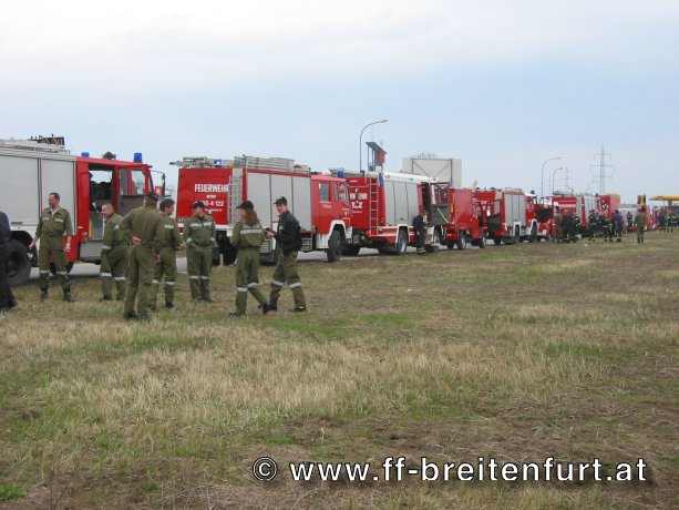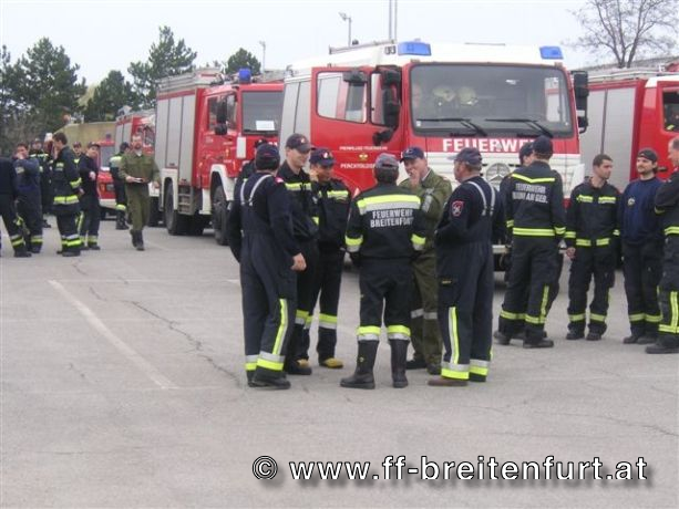 Um 14:50 Uhr rückte die Mannschaft der FF Breitenfurt mit dem KDO 1, dem TANK 2 sowie dem LAST, als angefordertes Sonderfahrzeug, und mit insgesamt 13 Mann zum Sammelplatz in der Süd Stadt aus. Um ca. 15:30 Uhr fuhr die gesamte KHD-Bereitschaft (225 Mann und 49 Fahrzeugen) in das Katastrophen Gebiet nach Gänserndorf.