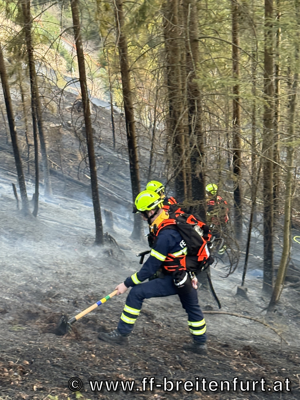 Im Rahmen der NÖ Waldbrandbekämpfungseinheit wurde die Freiwillige Feuerwehr Breitenfurt mit ihrem speziell ausgerüsteten Waldbrandfahrzeug (TANK 2) sowie die FF Gumpoldskirchen mit dem Pick-up-Fahrzeug zur Unterstützung alarmiert.