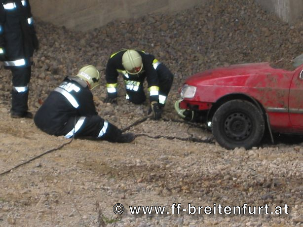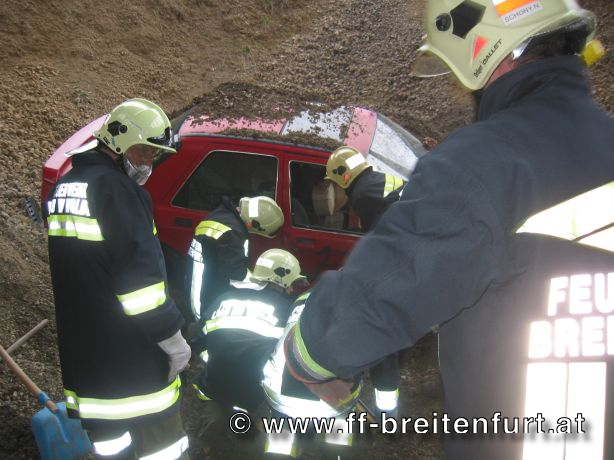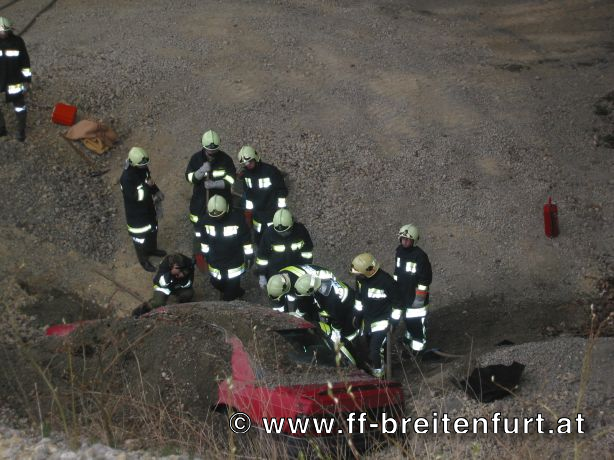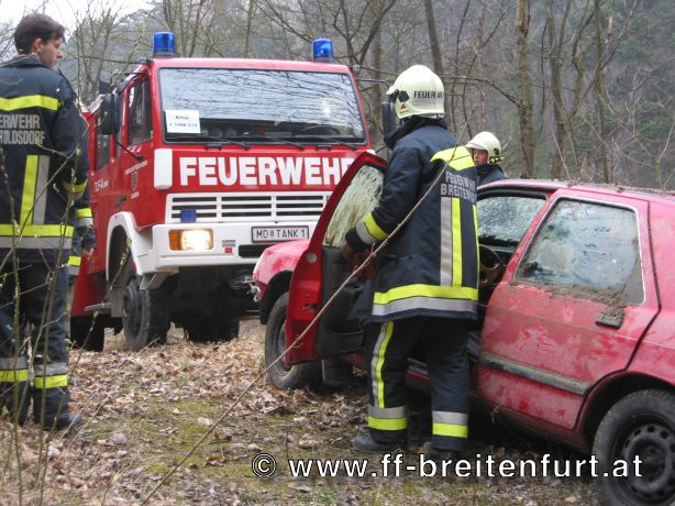 Der im 2. Zug als 2. Tank2/14 eingeteilte TANK 2 musste mit den Feuerwehren Gaaden, Laab im Walde und Perchtoldsdorf zwei Personen aus einem verschütteten Fahrzeug retten und das Fahrzeug bergen. Die Menschenrettung wurde von der Feuerwehr Breitenfurt mittels hydraulischem Rettungssatz durchgeführt. Weiters unterstützte sie die Feuerwehr Laab beim Freischaufeln des Fahrzeuges. Der Brandschutz wurde von der Feuerwehr Perchtoldsdorf aufgebaut. Nachdem die zwei Insassen aus dem Fahrzeug befreit waren, wurden sie an die angeforderte Rettungsmannschaft übergeben. Die Fahrzeugbergung wurde von der Feuerwehr Gaaden durchgeführt. Mittels Seilwinde wurde der PKW zurück auf die Straße gezogen und gesichert abgestellt.