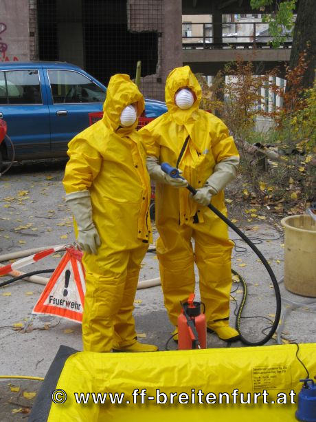 Der zur Übung dazu alarmierte Schadstoffzug soll die Dekontamination der Einsatzkräfte, dass Abdichten des lecken Tankwagens sowie der Bach- bzw. Kanaleinläufe und das Umpumpen des Tankwagens durchführen.