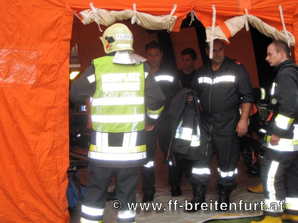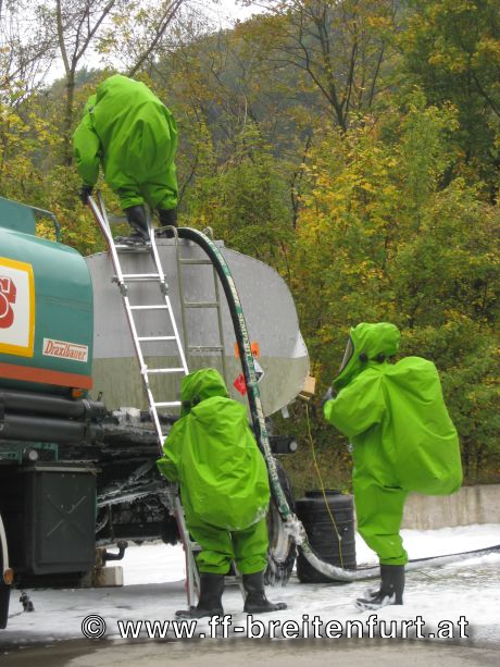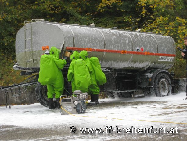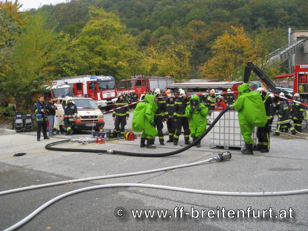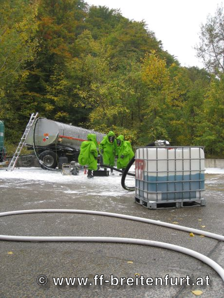 Von den Kräften der FF Kaltenleutgeben wurde die Menschenrettung unter schweren Atemschutz durchgeführt, sowie der Brandschutz sichergestellt. Die Kräfte der FF Perchtoldsdorf errichteten und betrieben gemeinsam mit der FF Breitenfurt den Dekoplatz. Weiters wurde von einem Schutzstufe 3 Trupp der FF Perchtoldsdorf der lecke Tankwagen abgedichtet. Die FF Wr. Neudorf baute eine Pumpenlinie für das Umpumpen des Schadstoffes (Formaldehyd) auf und brachte diese unter Schutzstufe 3 zum Einsatz. Ein Schutzanzugtrupp der FF Breitenfurt unter Schutzstufe 2 dichtete einen großen Wasserablauf mittels Rohrdichtkissen ab.Betreffend der Zusammenarbeite aller Einheiten konnte festgestellt werden, dass der Schadstoffzug Mödling in der bestehenden Zusammensetzung optimal funktioniert und die Einsatzkräfte sich bis auf wenige Spezialtätigkeiten bestens ergänzen.