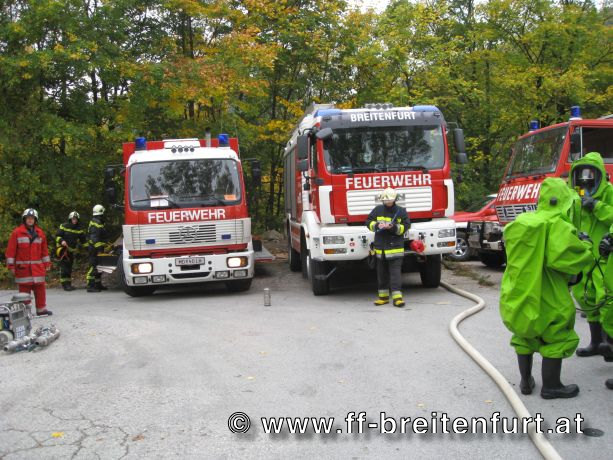 Der Schadstoffzug Mödling, bestehend aus den Feuerwehren FF Wr. Neudorf, FF Perchtoldsdorf und Breitenfurt, soll im Zuge dieser Übung, gemeinsam mit der Feuerwehr Kaltenleutgeben, das miteinander Arbeiten bei Einsätzen mit Schadstoffen üben. Die Feuerwehr Kaltenleutgeben ist die erst eintreffende Feuerwehr bei einem Verkehrsunfall zwischen einem PKW und einem Schadstofftransporter; Eine Person ist eingeklemmt.