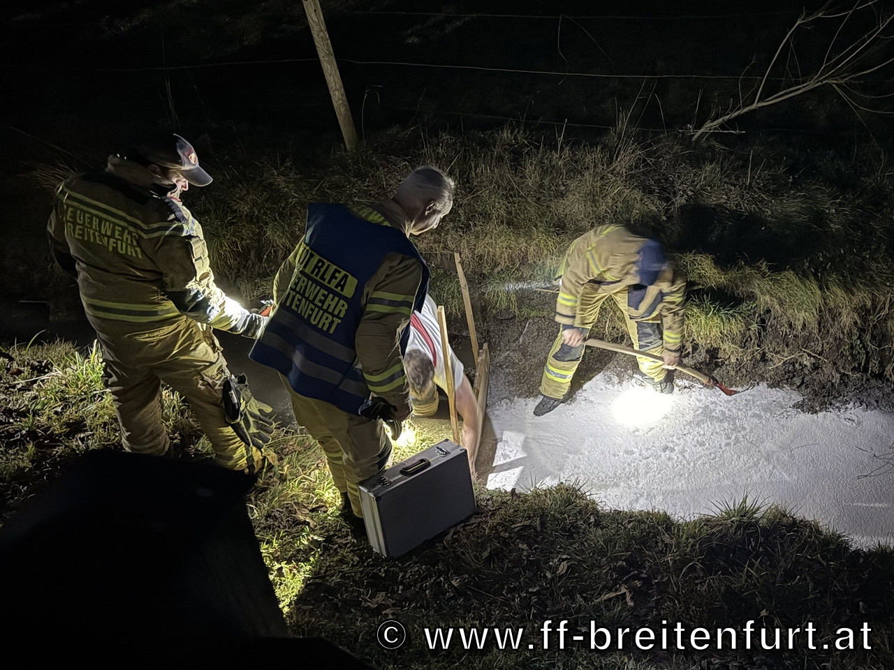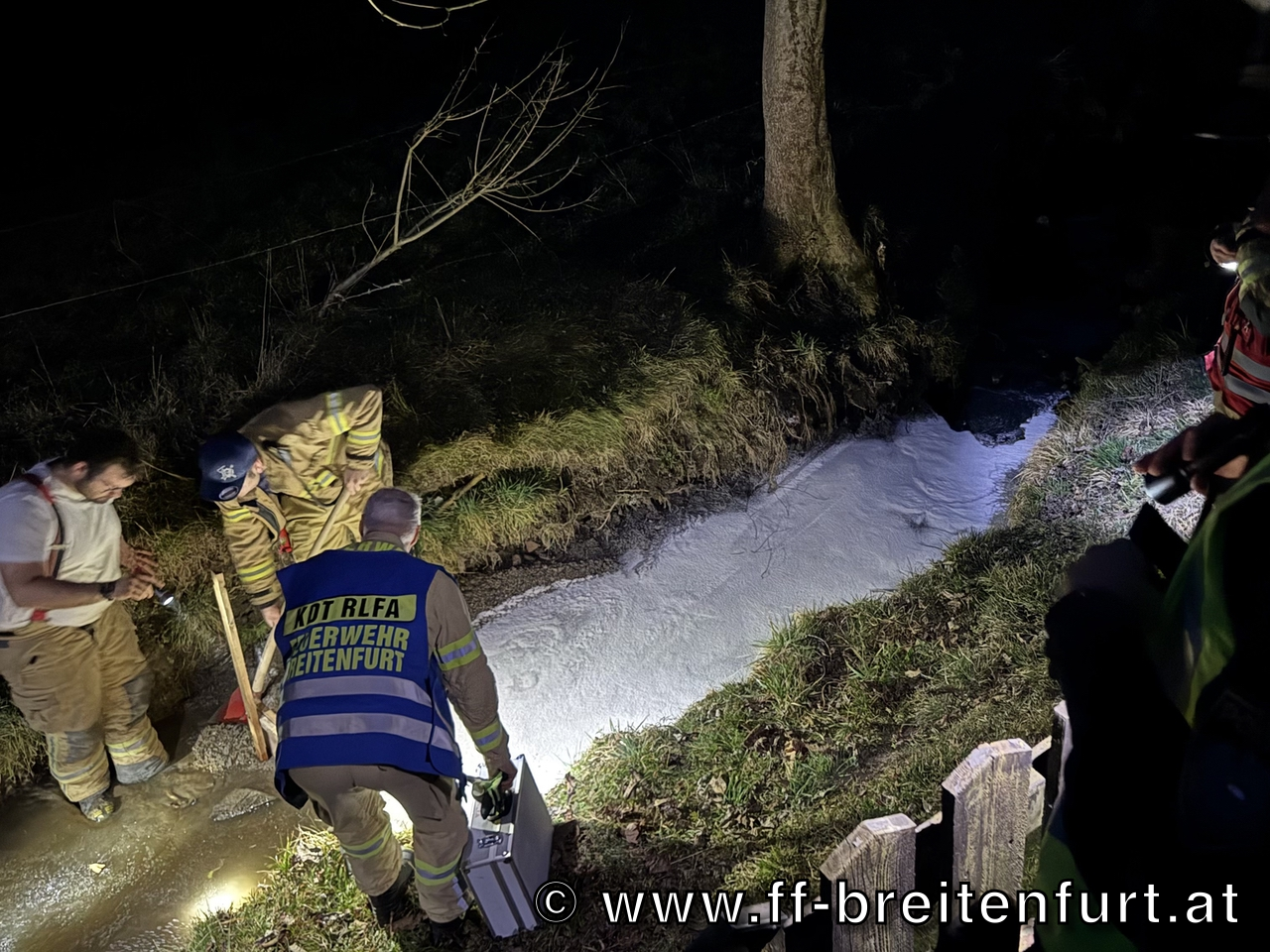 Nach dem Austritt einer größeren Menge Heizöl kam es zu einer Verunreinigung eines Baches, der direkt an das betroffene Grundstück angrenzt.