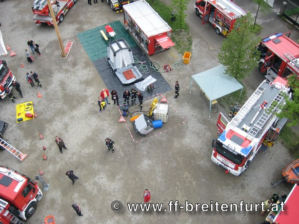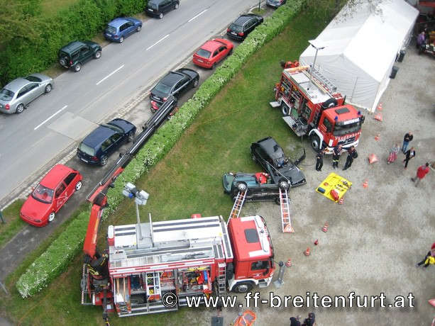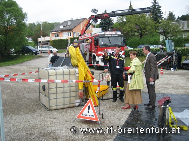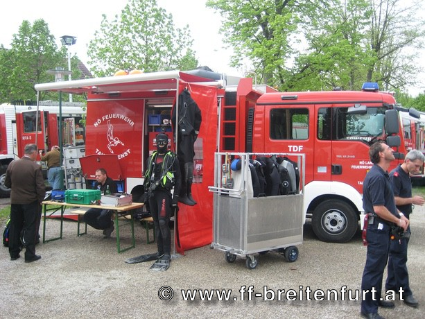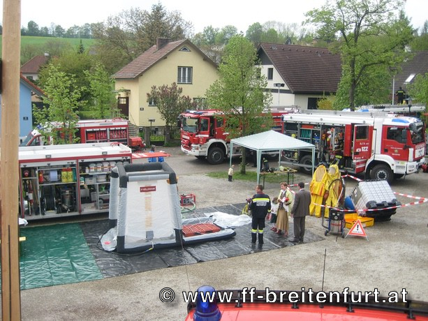 Nach der Sitzung unterhielt der Musikverein Breitenfurt die Festgäste und spielte zum Frühschoppen munter auf. Parallel dazu fand am Freigelände vor dem Feuerwehrhaus eine besondere Leistungsschau der Feuerwehren aus dem gesamten Bezirk Mödling, Wien Umgebung und Baden-Land statt. Die Bevölkerung konnte sich über das breite Tätigkeitsfeld der Freiwilligen Feuerwehren informieren. Feuerwehrtaucher, Schadstoffdienst, Sonderfahrzeuge des technischen Hilfsdienstes und nicht zuletzt unsere neue Drehleiter konnten bei den einzelnen Stationen besichtigt werden.