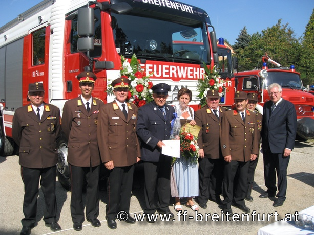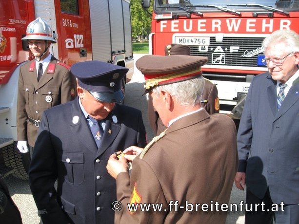 Zum Abschluss des Festaktes wurde Altkommandant Willy Geyer von der Freiwilligen Feuerwehr Breitenfurt in Bayern für seine Dienste um die Feuerwehrfreundschaft mit der Feuerwehr Breitenfurt in Österreich von der Marktgemeinde Breitenfurt, dem Landesfeuerwehrverband Niederösterreich und von unserer Feuerwehr geehrt.