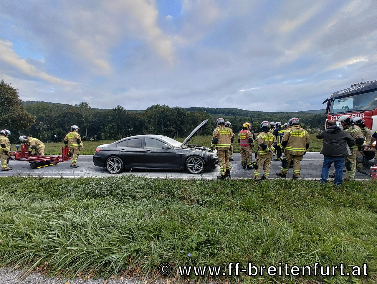 Am 01. Oktober 2025 wurde die Freiwillige Feuerwehr Breitenfurt zu einem Fahrzeugbrand auf die B13 zwischen Breitenfurt Ost und Breitenfurt Ostende alarmiert.