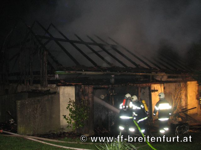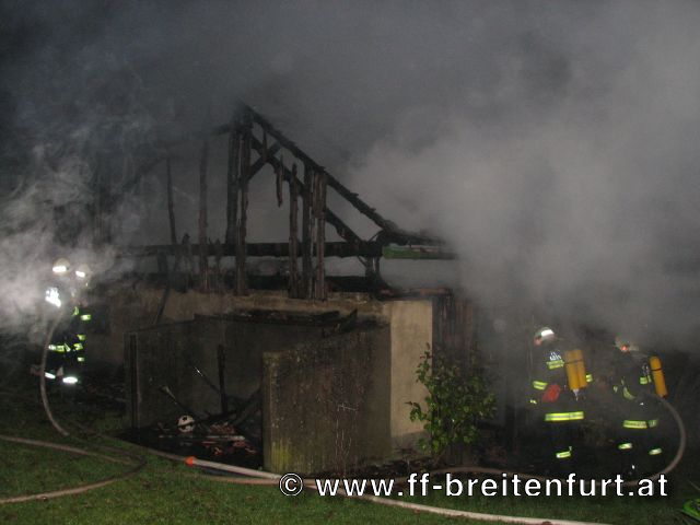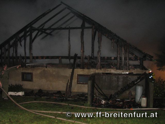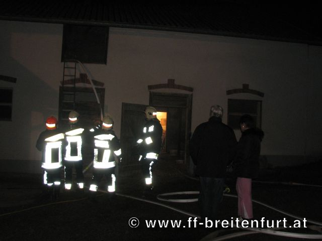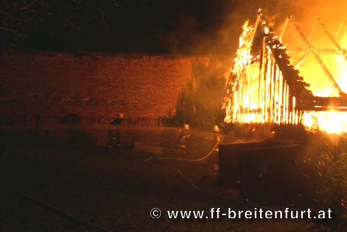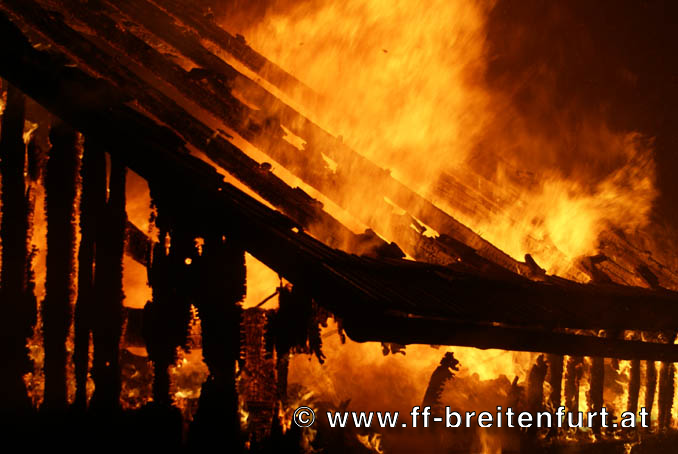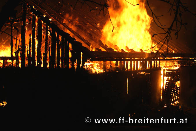 In mitten eines Dreikanthofs stand eine Scheune in Vollbrand. Das Feuer drohte auf Wohnhaus und Stall überzugreifen. Aufgrund des Alarmplans der FF Laab im Walde wurden wir zu diesem Einsatz mitalarmiert.