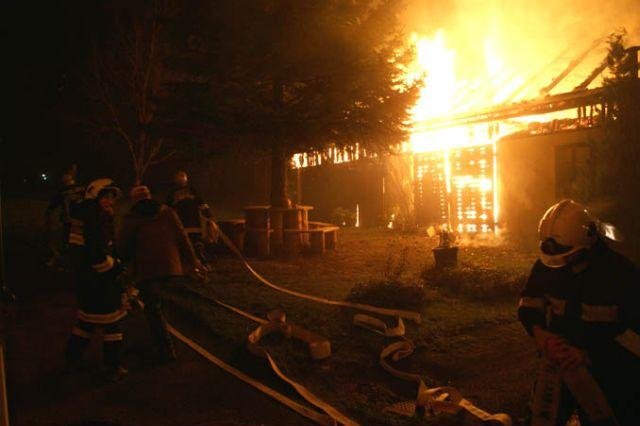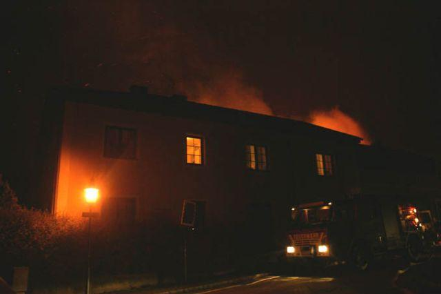 Schützen des Stalles, teilweise unter Atemschutz, mittels 2 C-Rohren
