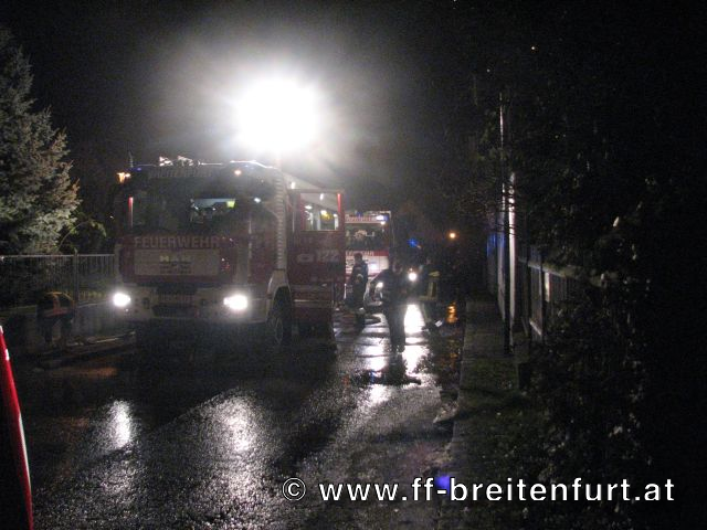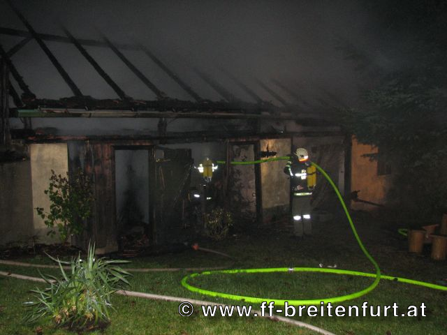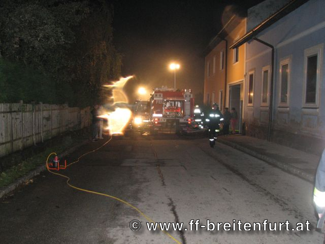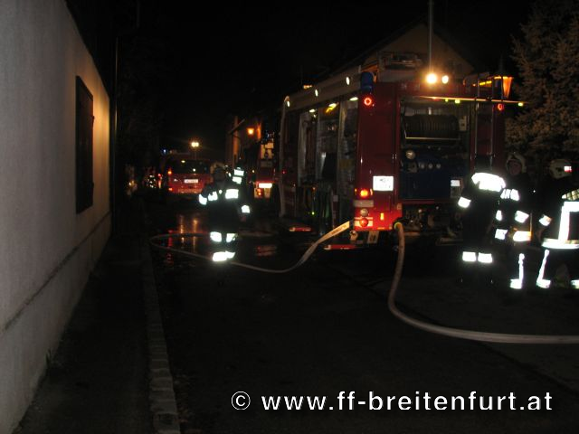 Unterstützung der FF Laab im Walde bei der direkten Brandbekämpfung im Innenhof