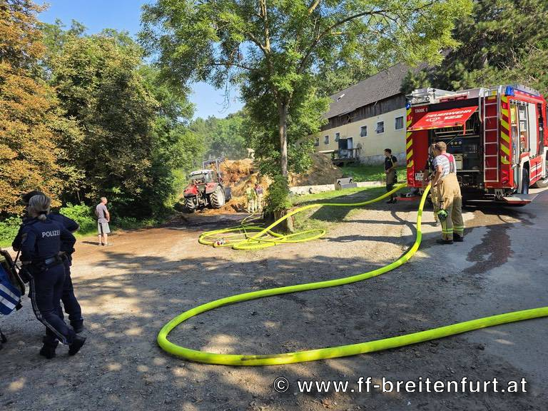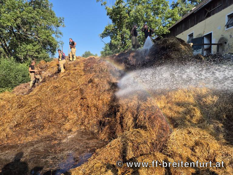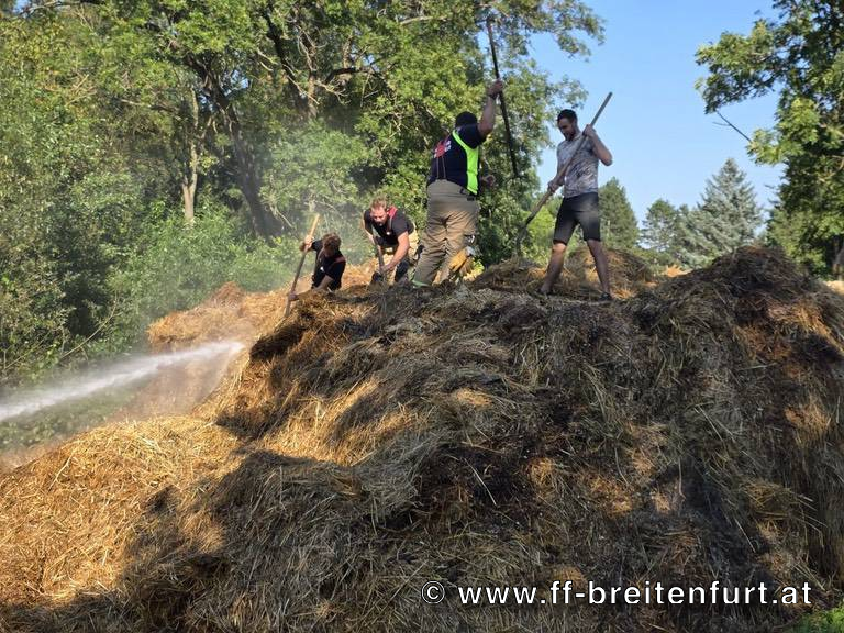 Am Montag, dem 9. August, wurde die Freiwillige Feuerwehr Breitenfurt um 16:29 Uhr mittels Sirene zu einem Misthaufenbrand nach Breitenfurt West alarmiert.