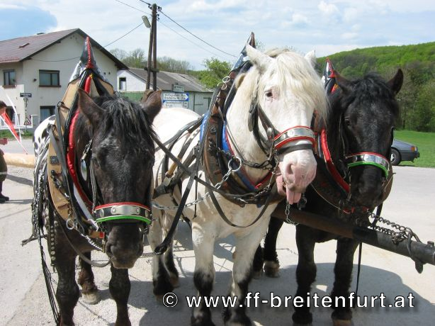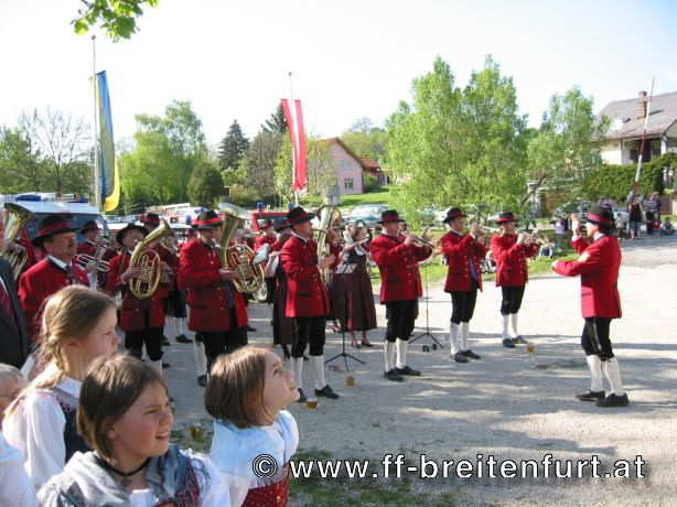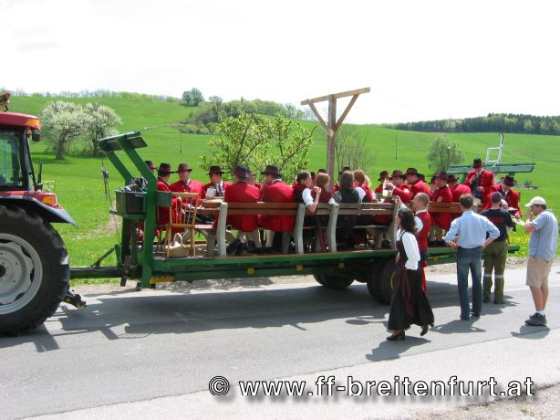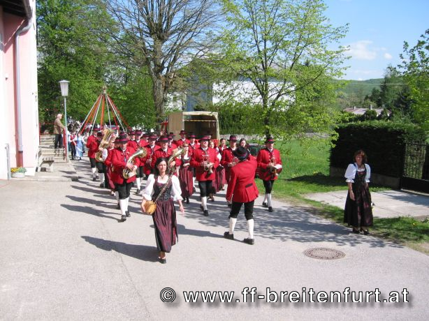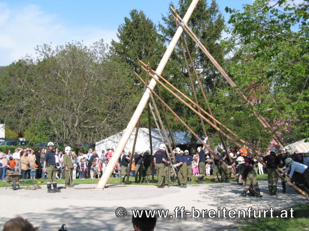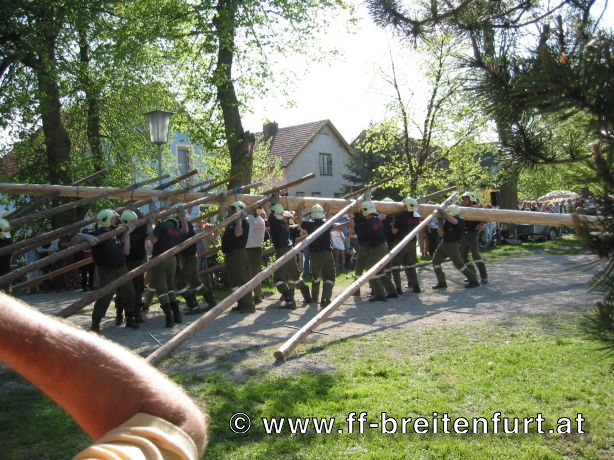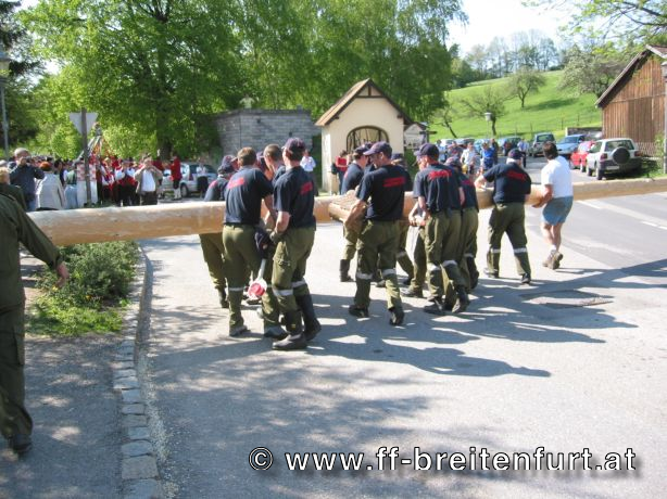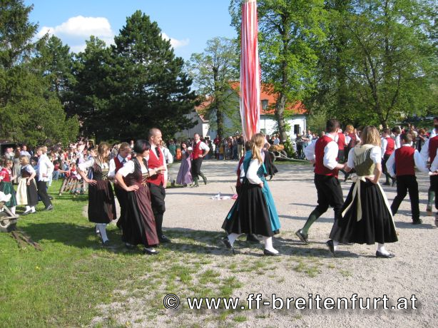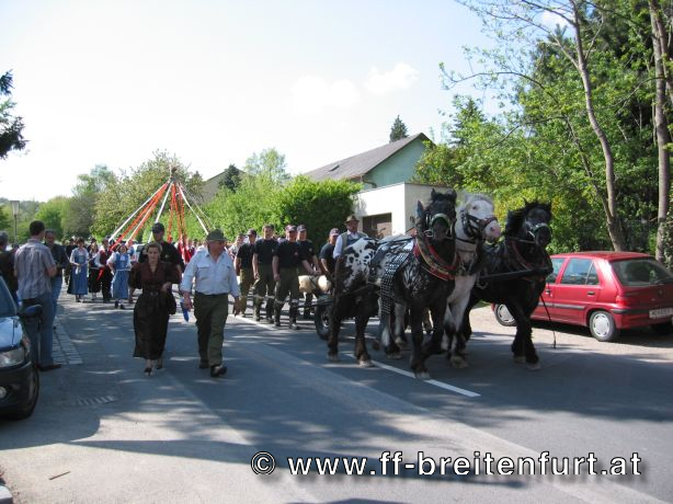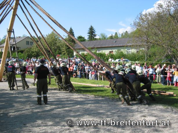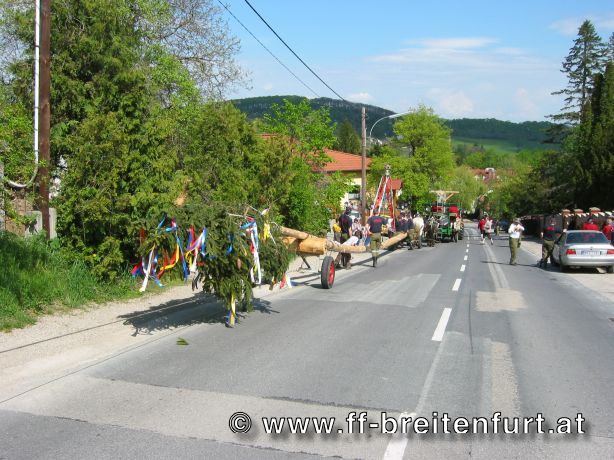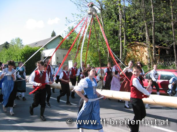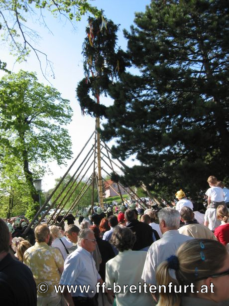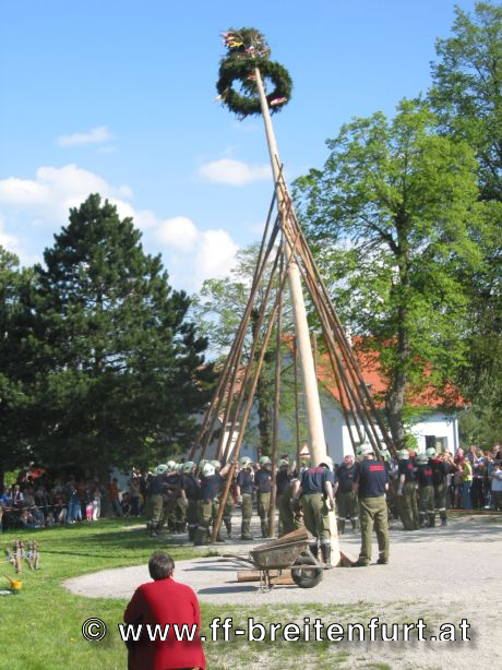 Am 1. Mai 2004 fand beim Feuerwehrhaus in Breitenfurt das 30. Breitenfurter Maibaum-Aufstellen statt. Trotz der schlechten Wettervorhersage begannen der Musikverein und die Feuerwehr Breitenfurt bereits eine Woche vor dem Fest mit den Vorbereitungen. Der Baum, eine Fichte aus dem Wienerwald, wurde am frühen Morgen des 1.Mai von einer kleinen Gruppe von Feuerwehrmännern geschlagen, entrindet und geschmückt. Gezogen von einem Pferdegespann und unter der musikalischen Begleitung des Musikvereins sowie der Feuerwehr wurde der Baum vom „Hengstlstraßl“ in Großhöniggraben über Hochrotherd bis zum Feuerwehrhaus transportiert. Bei strahlendem Sonnenschein wurde der 32 Meter hohe Baum unter der Beobachtung von ca. 900 Besuchern zum Aufstellen vorbereitet. Das Aufstellen des Maibaumes erfolgt händisch so genannten „Schwabeln“ und erfordert genauestes Arbeiten. Als alle Vorbereitungen abgeschlossen waren, und alle Schwabeln mit drei Feuerwehrmännern besetzt war ertönte das erste laute „Ho Ruck“ von