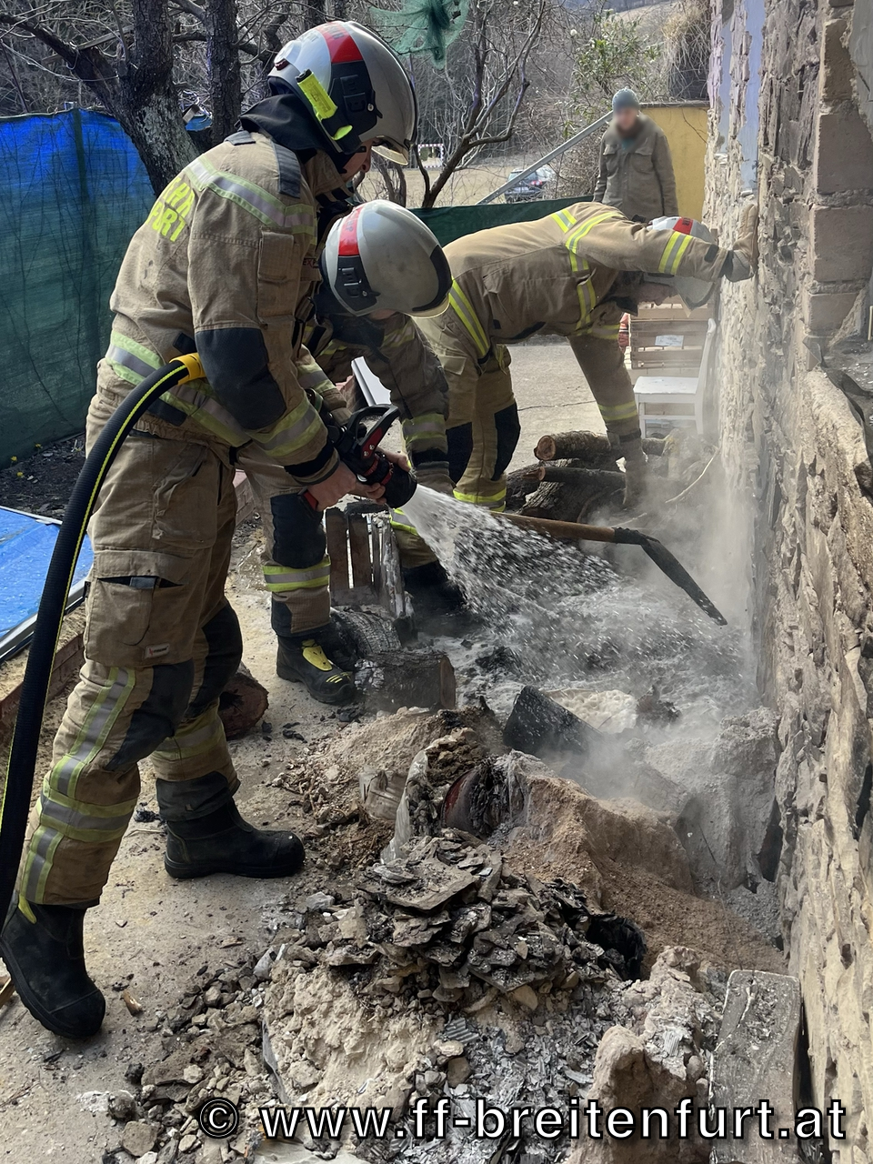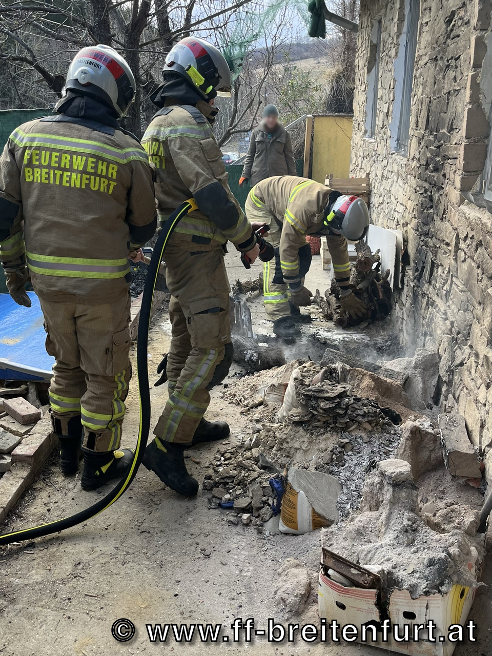 Brand von Bauschutt und Holz vor dem Wohnhaus.