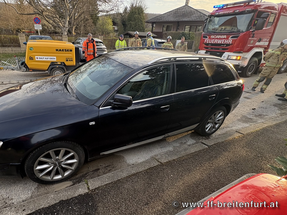 Aufgrund eines Wassergebrechens musste ein, im Baustellenbereich, geparktes Fahrzeug entfernt werden.