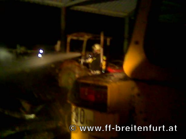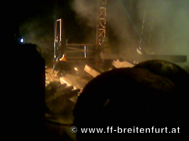 Bei Ankunft der Feuerwehr stand bereits ein drittel der Halle sowie Teile der Dachunterkonstruktion in Vollbrand. Nachdem ein Eingangstor gewaltsam geöffnet wurde, konnte sofort ein Rohr unter schweren Atemschutz vorgenommen, und der Brand eingedämmt werden. Nach Einsatz eines zweiten Rohres ebenfalls unter schweren Atemschutz konnte der Brand gelöscht werden. Das Brandgut wurde in weiterer Folge zerlegt und Nachlöscharbeiten im erforderlichen Ausmaß durchgeführt. Eine Nachuntersuchung wurde für den kommenden Morgen um 09:00 Uhr angesetzt. Bei dieser konnte keine Gefährdung mehr festgestellt werden.