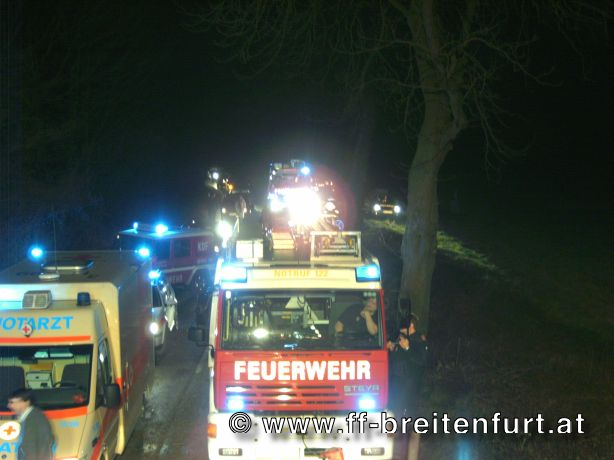 Aus unbekannter Ursache kam es in der Nacht vom 25 auf den 26. Dezember bei der Ortseinfahrt „Breitenfurt Ostende“ zu einem schweren Verkehrsunfall mit einer eingeklemmten Person.