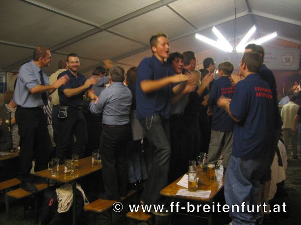 Ab 20 Uhr spielte die Gruppe „Die Breitenauer“ zum Tanz auf. Begeisterten sie zuerst vorwiegend das etwas gesetztere Publikum mit einer Polka nach der anderen so spielten sie in weiterer Folge Disco-Hits für die Jugend und die Junggebliebenen. Die Stimmung war hervorragend und so wie am Freitag endete der Tanzspaß um 2.30 Uhr.