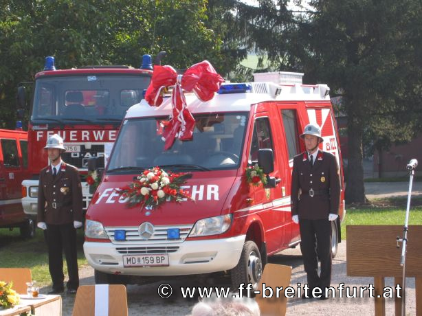 Am Sonntag, dem letzten der Festtage, fand nach der Kranzniederlegung für die verstorbenen Kameraden am Friedhof, vor dem Festzelt die Festmesse, zelebriert von Pfarrer Pater Zebinger, statt. Im Rahmen dieser Feier wurde das neue KLF gesegnet und von Bürgermeister Herzig der Bestimmung übergeben.