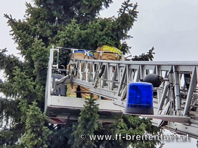 Heute Mittag wurde die Freiwillige Feuerwehr Breitenfurt zu einer Tierrettung zum Laaber Spitz alarmiert. Eine junge Katze war in etwa 10 Meter Höhe auf einer Fichte festgesessen und konnte nicht mehr hinunter.