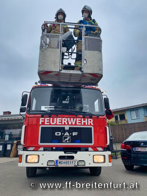 Die Katze wurde über die DREHLEITER und an den Besitzer übergeben.