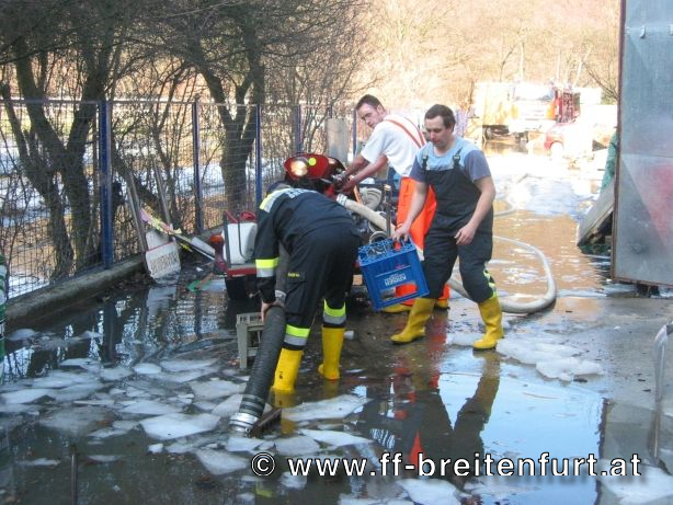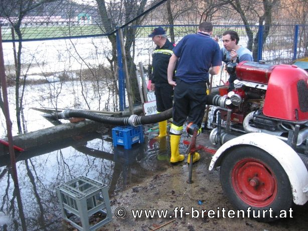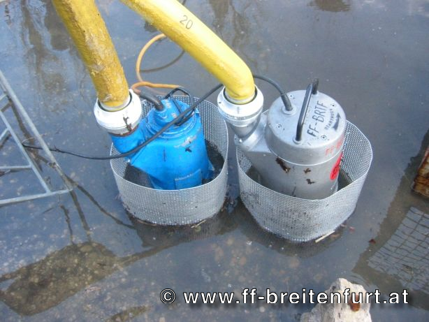 Nach etwa fünfstündiger Pumparbeit waren erste Erfolge sichtbar und der Wasserspiegel sank ab. Die Pumptätigkeiten wurden noch etwa zwei Stunden fortgesetzt bis die Wassersituation mittels einer vor Ort belassenen kleinen Unterwasserpumpe konstant gehalten werden konnte. Die Feuerwehr rückte um 19:00 Uhr ins Feuerwehrhaus ein, wo noch Reinigungsarbeiten durchgeführt werden mussten.