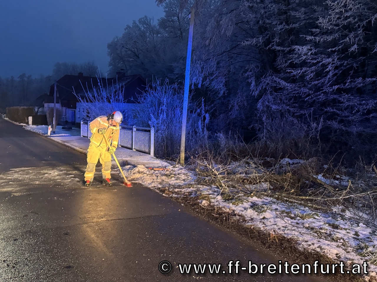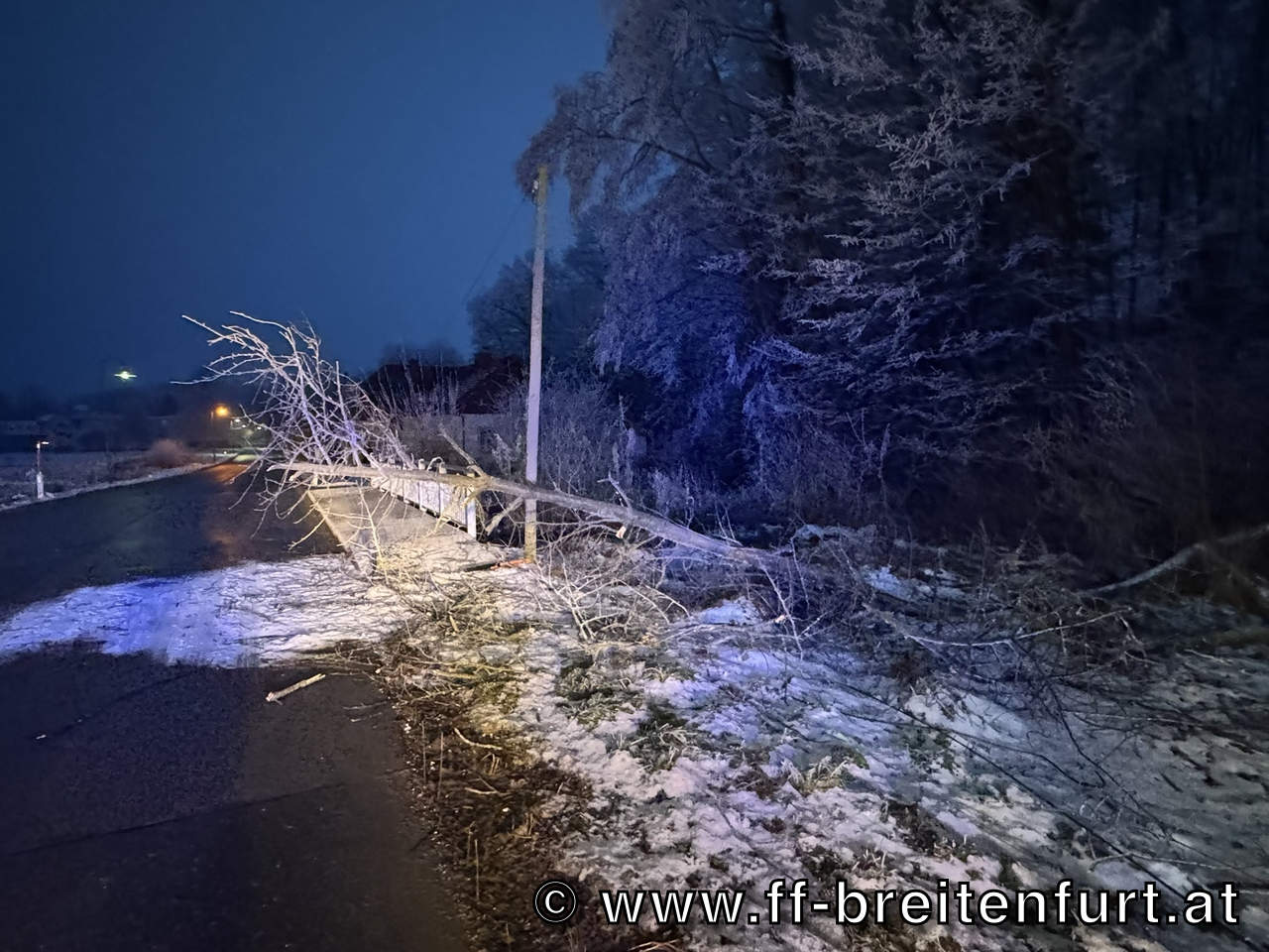 Aufgrund der herschenden Wetterverhältnisse entwurzelte es einen Baum. Dieser kam auf der Fahrbahn zum Liegen.