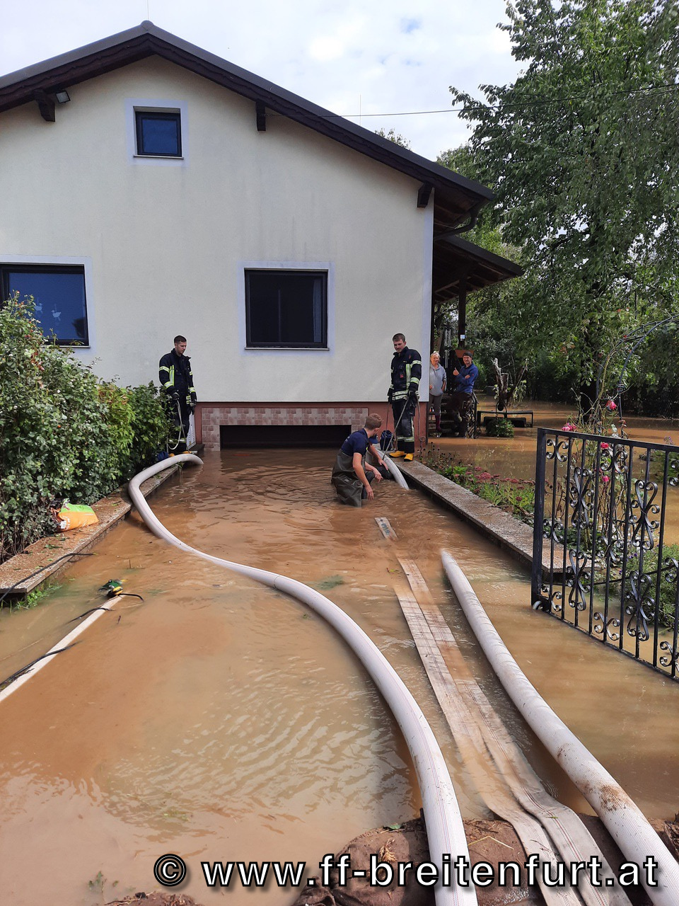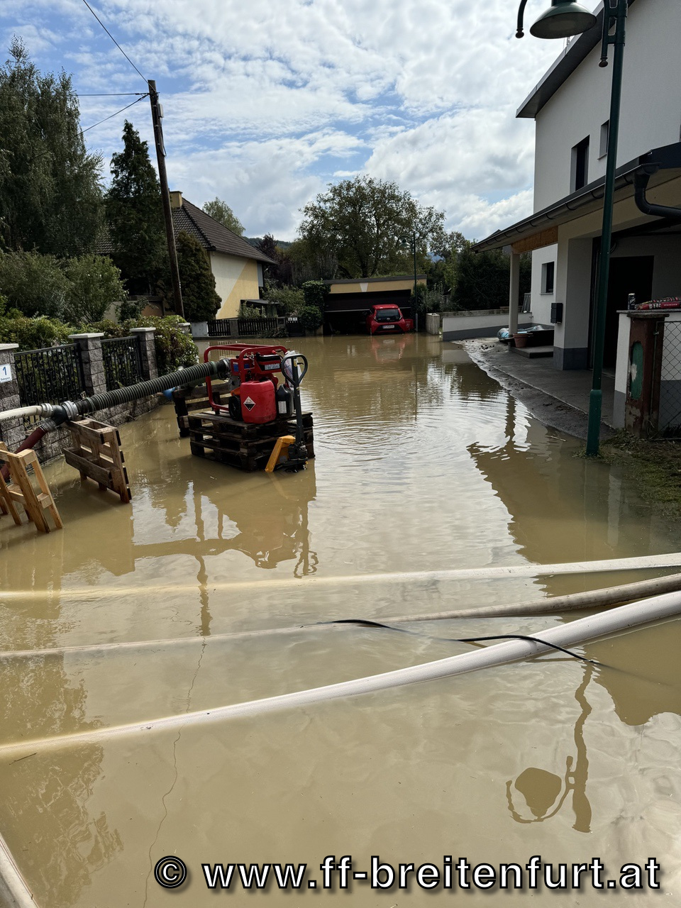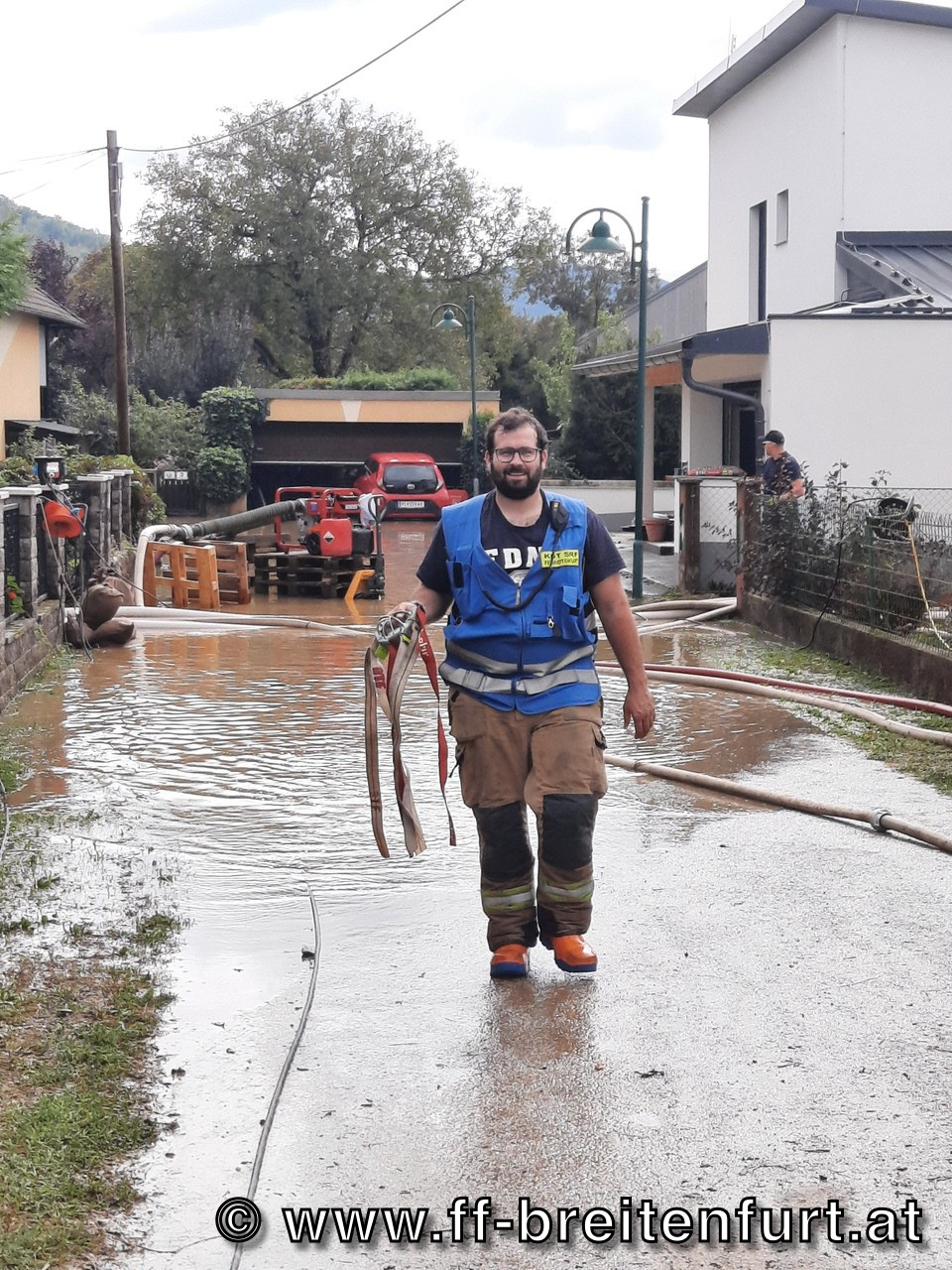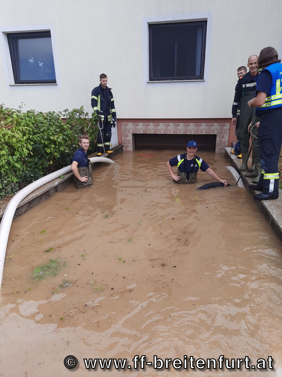 Vor Ort unterstützten unsere Kameraden gemeinsam mit weiteren Feuerwehreinheiten aus dem Bezirk Mödling die lokalen Einsatzkräfte. Hauptaufgaben waren das Auspumpen von überfluteten Kellern, Garagen und Grundstücken sowie das Freimachen von Verkehrswegen.