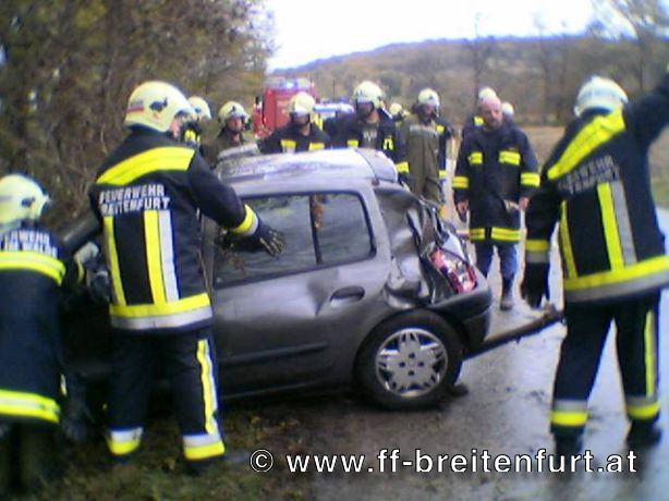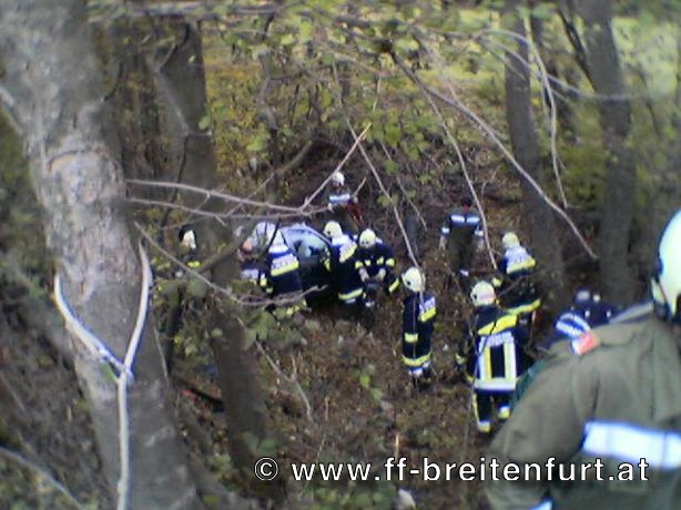 Wenige Sekunden nachdem die Feuerwehr Laab im Walde zu einem Verkehrsunfall mit Menschenrettung alarmiert worden ist, wurde auch die Feuerwehr Breitenfurt mittels Sirene alarmiert. Aus bisher unbekannter Ursache kam die Fahrzeuglenkerin eines Renault Clio von der Fahrbahn ab und stürzte mit dem Fahrzeug in das Bachbett des Laaber Bach.