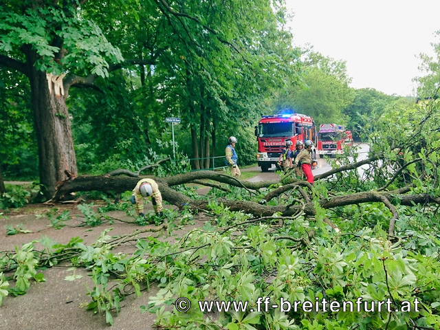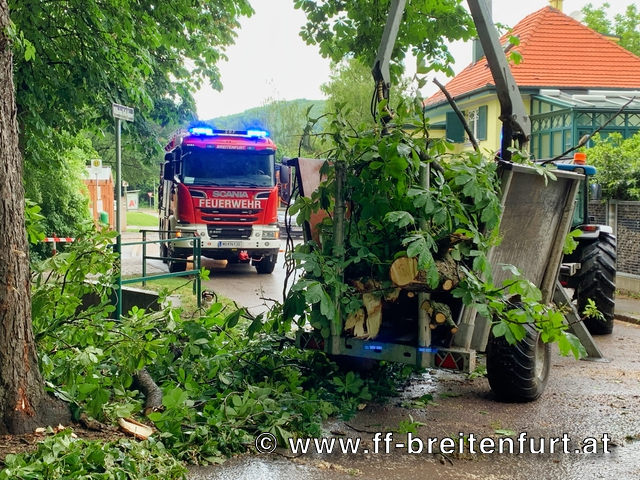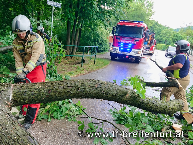 Aufgrund des starken Sturms musste die Freiwillige Feuerwehr Breitenfurt heute zu einem Sturmschaden in die Wilhelm Tell-Gasse ausrücken.