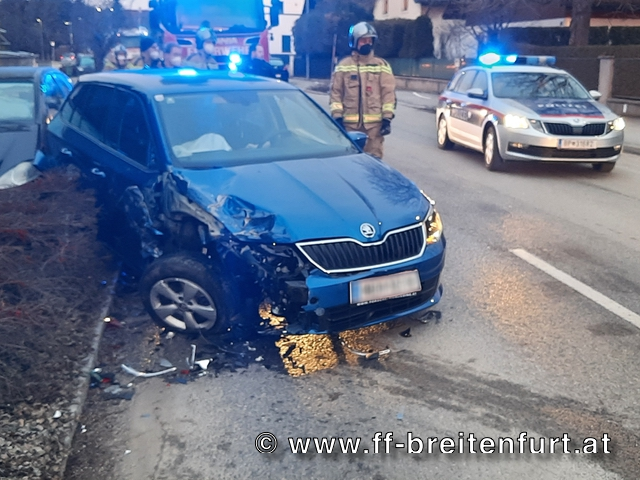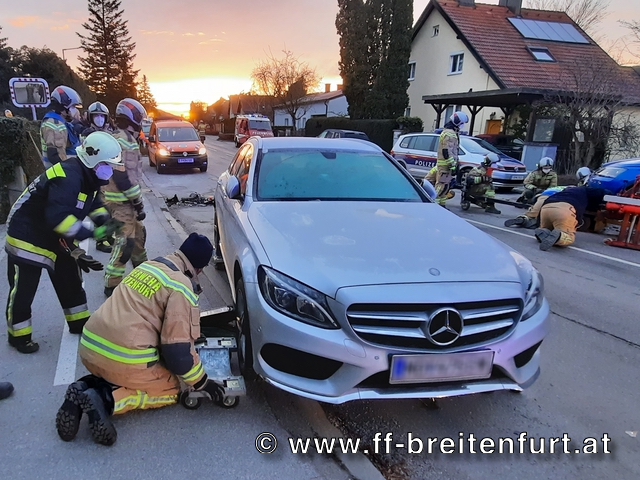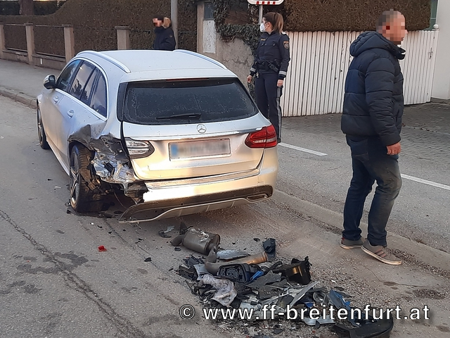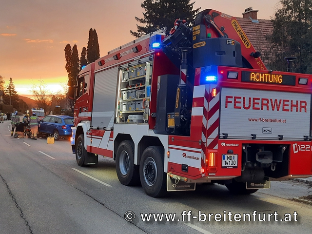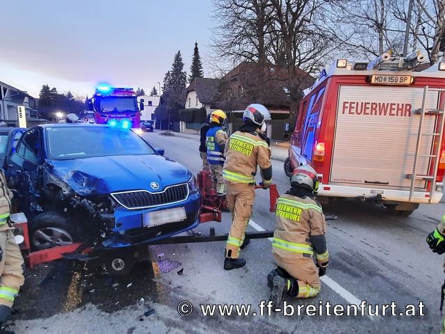 Da die Fahrzeuge so sehr beschädigt waren, dass ihre Lenker sie nicht mehr selbst entfernen konnten wurde die Freiwillige Feuerwehr Breitenfurt um 05:55 Uhr zur Fahrzeugbergung nach einem Verkehrsunfall alarmiert. Kurz nach 06:00 Uhr rückte die Mannschaft der FF Breitenfurt mit drei Fahrzeugen und der Abschleppachse aus.