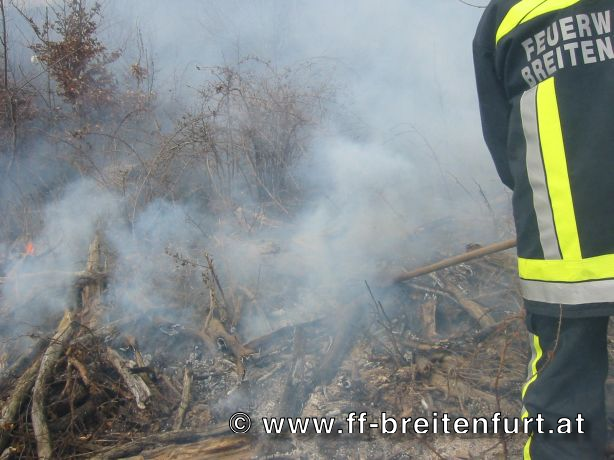 Die Brandherde wurden in erster Folge mittels Feuerpatschen bekämpft. Ein Atemschutztrupp der FW-Breitenfurt bekämpfte die Flammen in den stark verrauchten Gebieten. In weiterer Folge wurden die noch vorhandenen Glutnester abgelöscht.