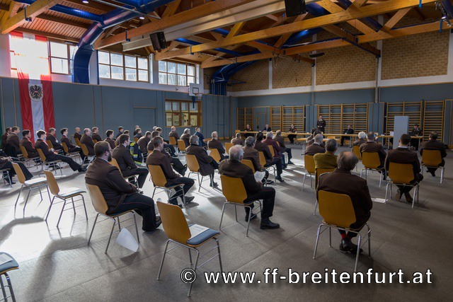 Aufgrund der Corona-Einschränkungen wurde die Versammlung in der Mehrzweckhalle Breitenfurt abgehalten. Die Sitzplätze wurden so aufgestellt, dass der notwendige Mindestabstand gewährleistet war. Vor der Hauptversammlung gab es die Möglichkeit, freiwillig an einem Covid-19 Schnelltest teilzunehmen. An dieser Stelle ein herzliches Dankeschön an die Marktgemeinde Breitenfurt und an das Rote Kreuz Breitenfurt für die Organisation und Durchführung der Tests.