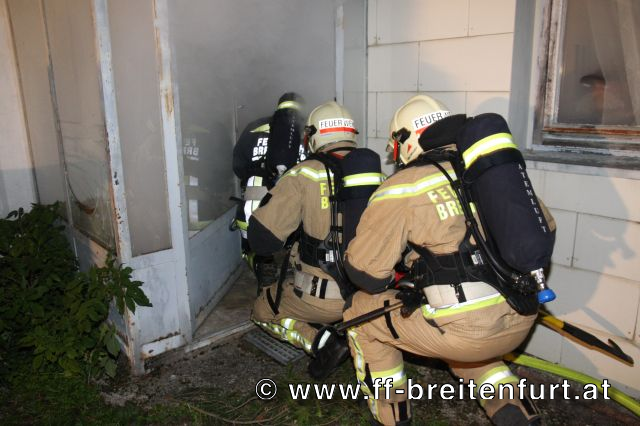Bei der Ankunft des TANK 3 wurde eine Löschleitung vorbereitet, die Mannschaft rüstete sich mit Atemschutz aus und begann mit der Personensuche. Die Mannschaft des nächsten angekommen Fahrzeuges dem RLF rüstete sich ebenfalls mit Atemschutz aus und unterstütze die bereits suchende Mannschaft mit der Suche nach den vermissten Personen.