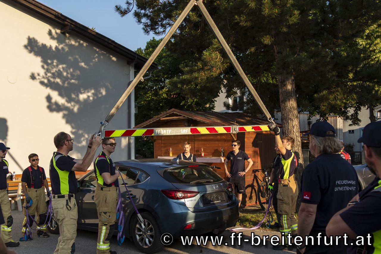 praktische Durchführung des Hebens von Fahrzeugen mit dem Bergebalken