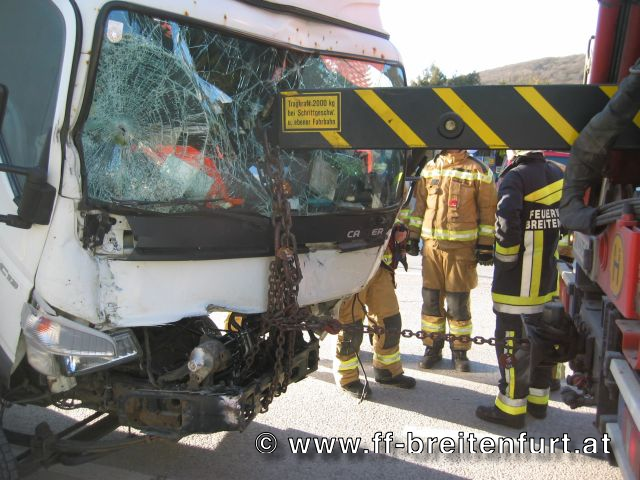 Aus unbekannter Ursache kam es zu einem schweren Verkehrsunfall zwischen einem PKW und einem LKW.
