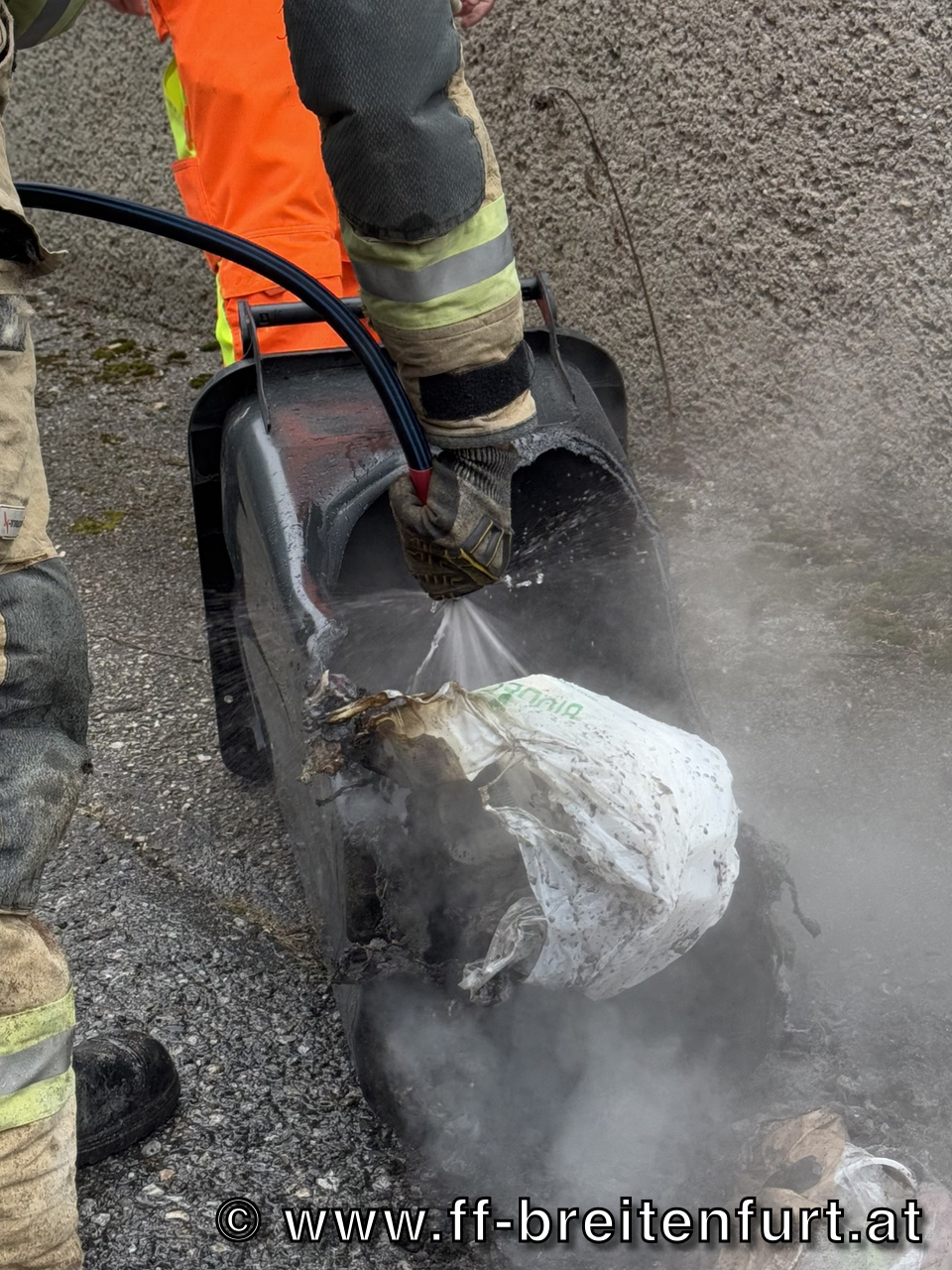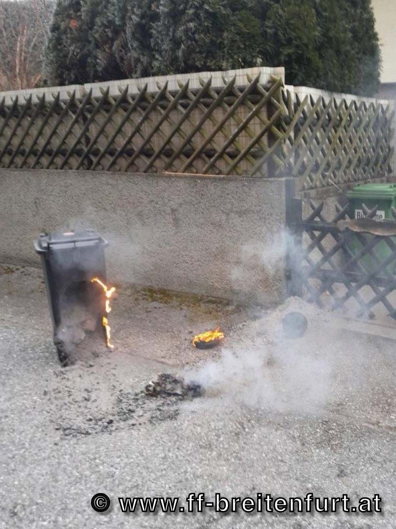 Beim Eintreffen an der Einsatzstelle stand eine Restmülltonne in Vollbrand.