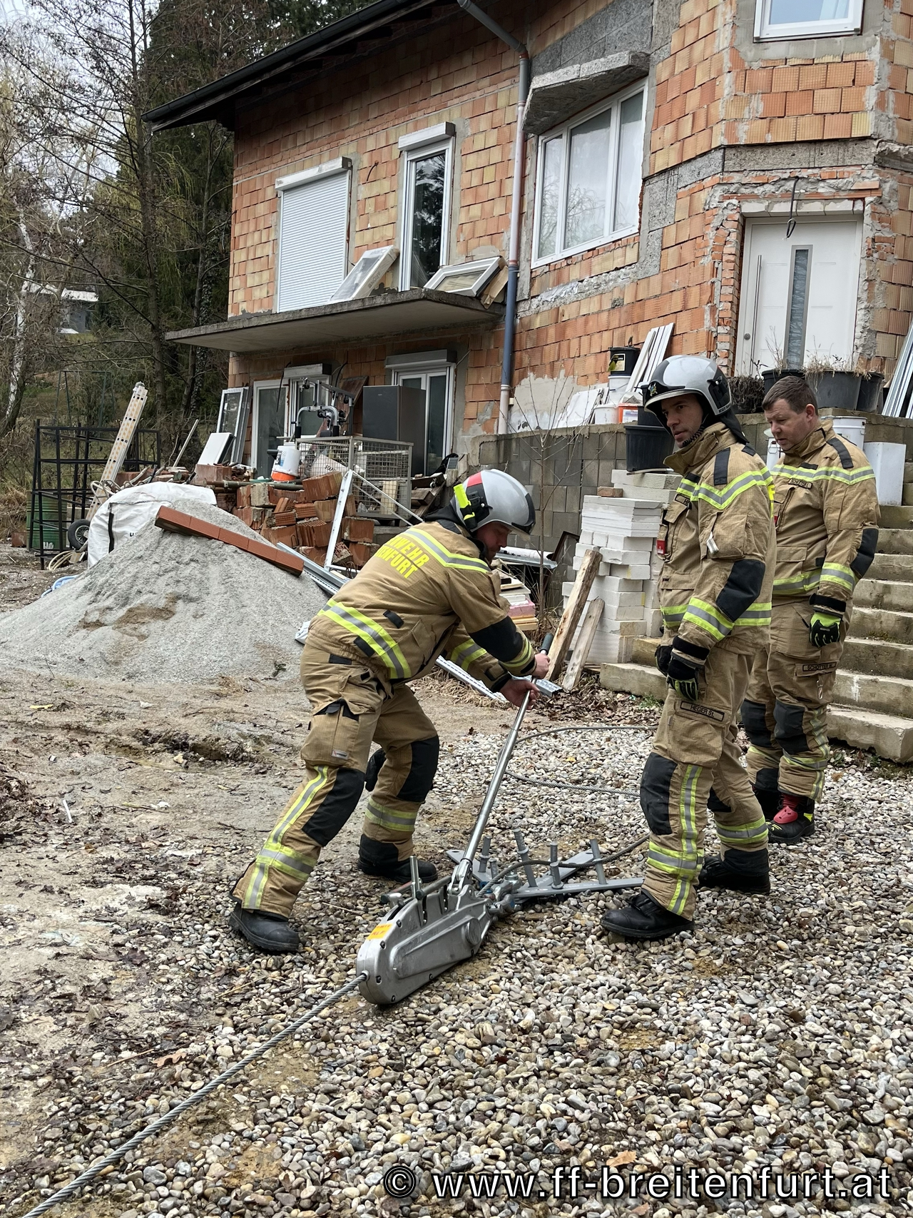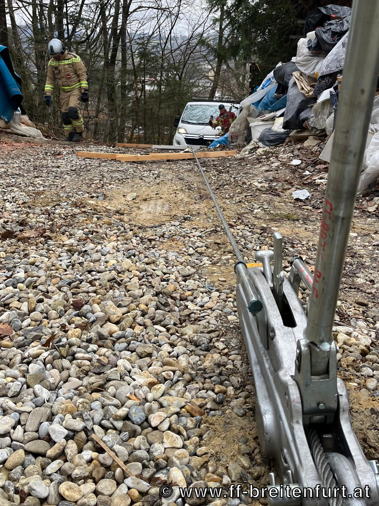 Das Fahrzeug wurde mittels Greifzug und einer Freilandverankerung auf die Fahrbahnstreifen zurückgezogen und in weiterer Folge gesichert auf die Fahrbahn abgelassen. Der Lenker konnte im Anschluss sein Fahrt sicher auf der Fahrbahn abstellen und parken.