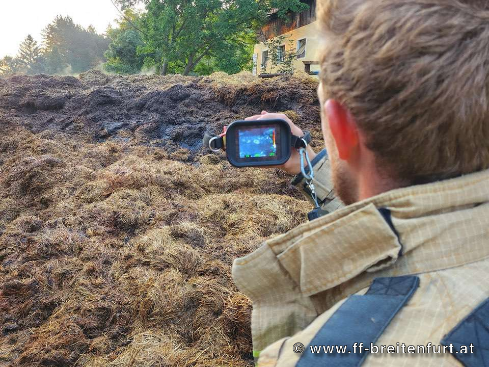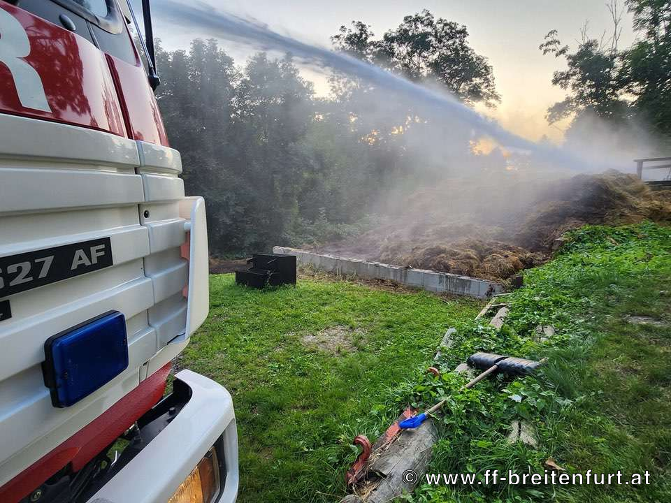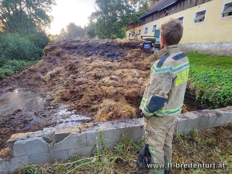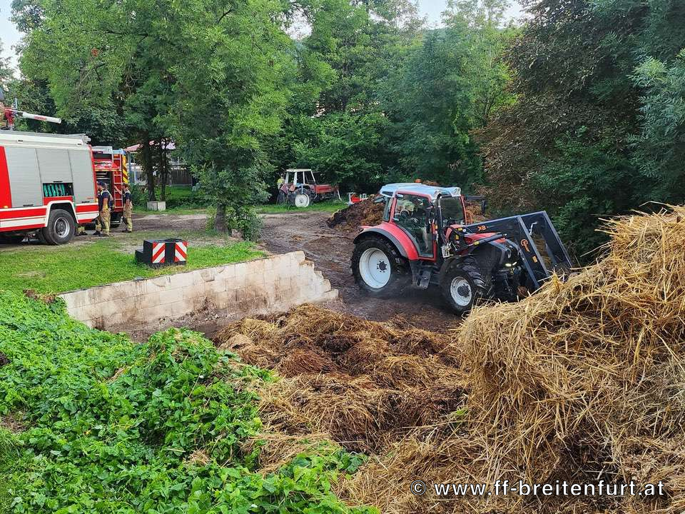 Am 10. August 2025, wurde die Freiwillige Feuerwehr Breitenfurt um 05:20 Uhr in der Früh erneut zu dem am Vortag in Brand geratenen Pferdemisthaufen in Breitenfurt West alarmiert.