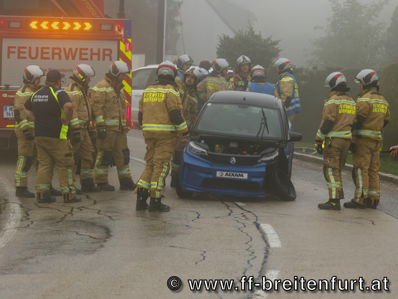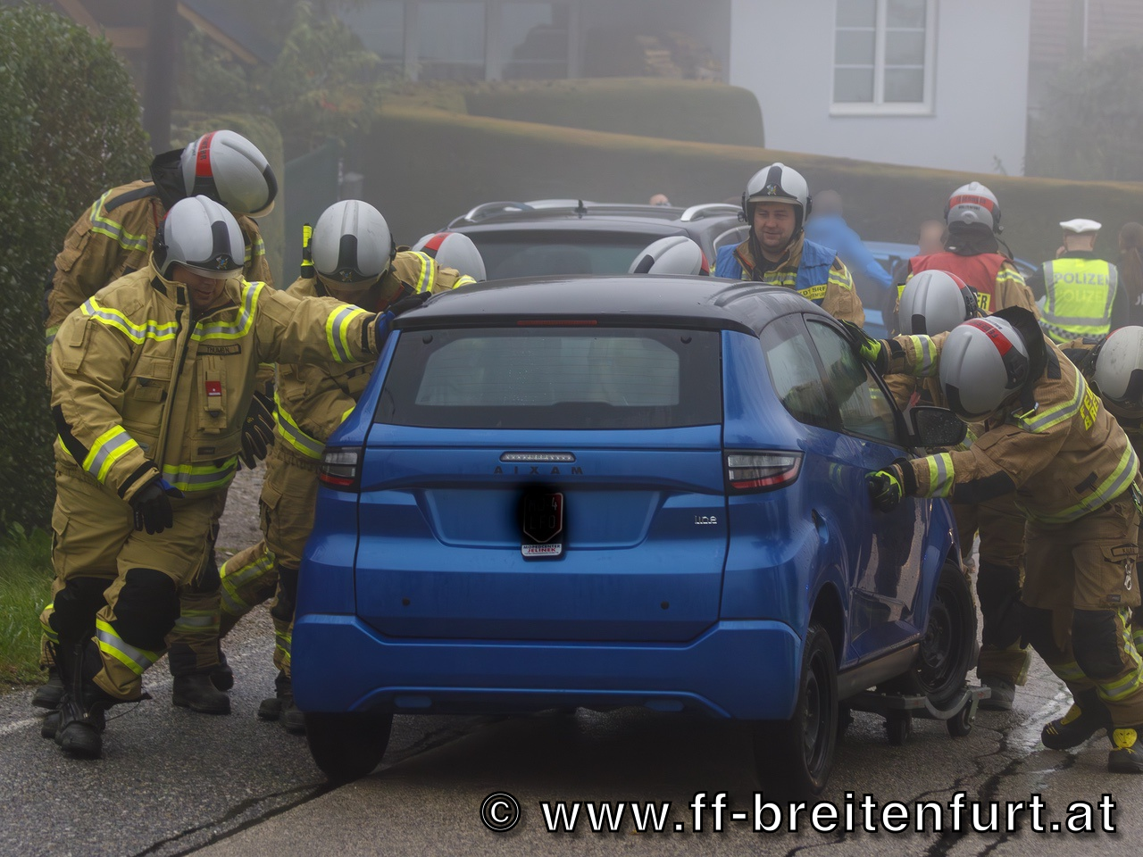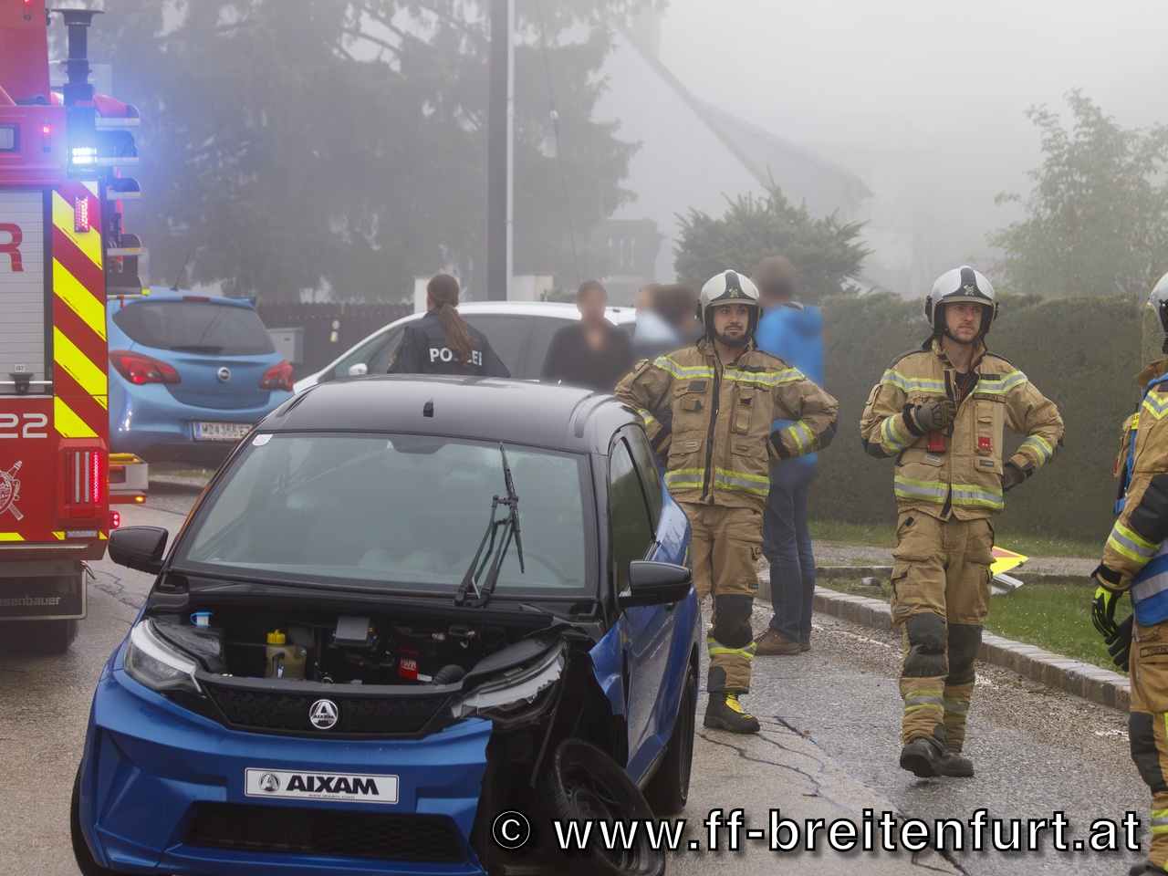 In Folge eines Verkehrsunfalls kamen ein PKW sowie ein Mopedauto fahruntauglich auf der Fahrbahn zum Stillstand. In den Fahrzeugen befanden sich keine Personen. Polizei und Rettung waren bereits an der Einsatzstelle. Die Polizei übernahm die Absicherung, während sich der Rettungsdienst um die Erstversorgung der beteiligten Personen kümmerte.
