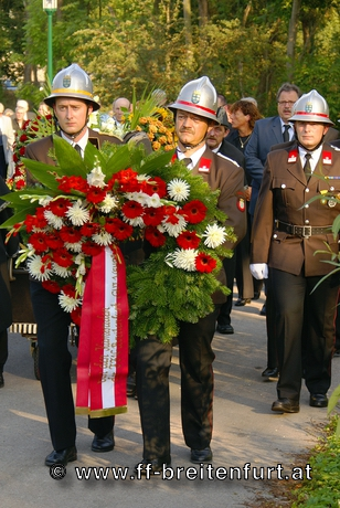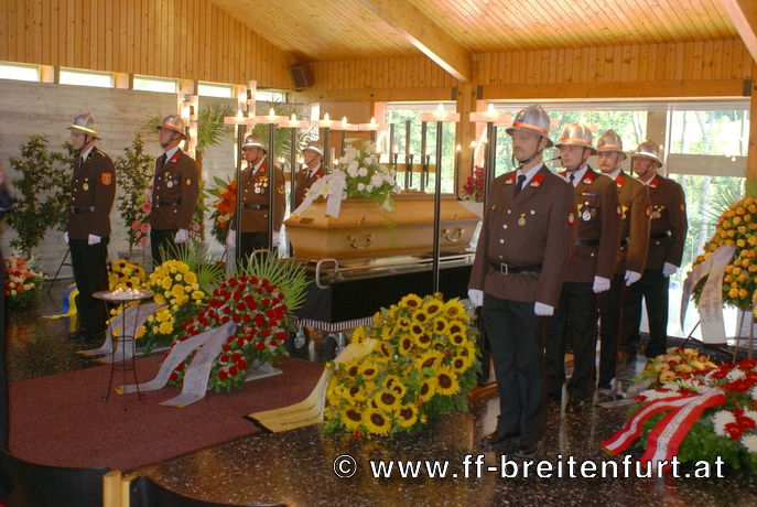 An die 100 Mann von den verschiedensten Feuerwehren des Bezirks Mödling, allen voran LFR Franz Koternetz, und eine Abordnung unserer deutschen Partnerfeuerwehr begleiteten den Ehrenzug. Die Trauerfeier endete mit einer Rede von LFR Koternetz in welcher er die langjährigen Dienste, die besonderen Verdienste um das Feuerwehrwesen im Bezirk Mödling und im Land Niederösterreich und die vorbildlich gelebte Kameradschaft von unserem Kurt lobte.
