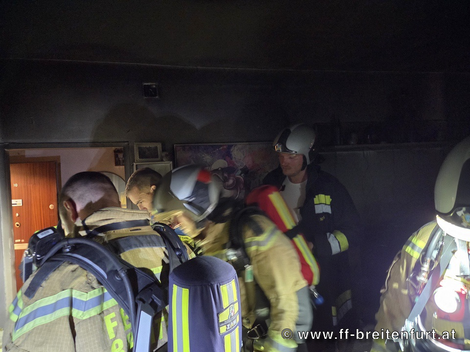 Aus bislang unbekannter Ursache kam es in einer Wohnung eines Mehrparteienhauses zu einem Brand. Bereits während der Anfahrt erhielten die Einsatzkräfte von der Bezirksalarmzentrale die Information, dass das Feuer durch die Bewohner abgelöscht werden konnte.