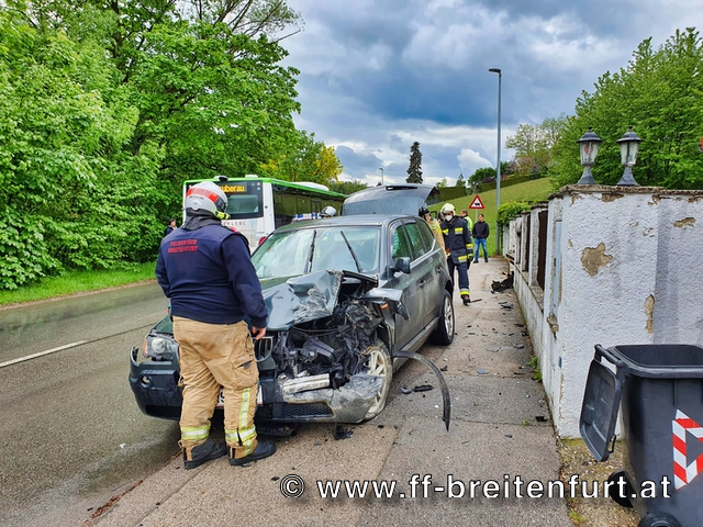 Aus unbekannter Ursache war der Lenker eines PKW von der Fahrbahn abgekommen, gegen eine Gartenmauer gefahren und ist dort, teilweise am Gehsteig und auf der Fahrbahn, verkehrsbehindernd zum Stillstand gekommen.