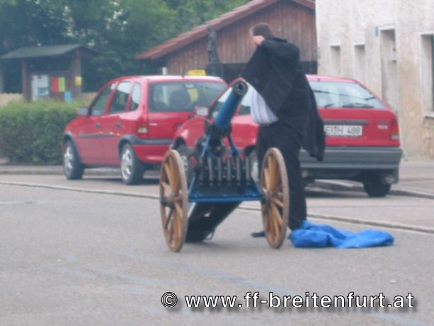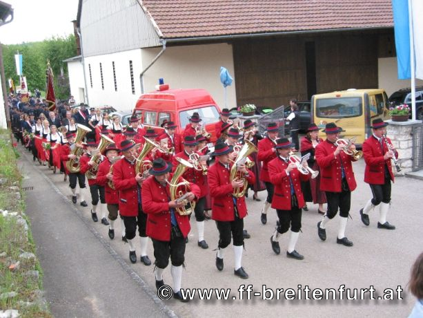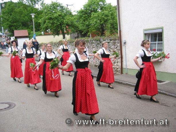 Am nächsten Morgen wurden wir um 07:00 Uhr durch Kanonenschüsse geweckt. Um 09:30 Uhr fand im Festzelt eine Feldmesse statt. Im Anschluss spielte der Musikverein Breitenfurt bei Wien ein phänomenales Frühschoppen, welches die deutschen Festgäste begeisterte. Danach fand ein Festzug aller Vereine und Feuerwehren durch die Ortschaft statt.