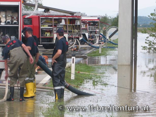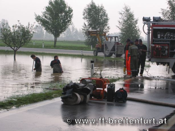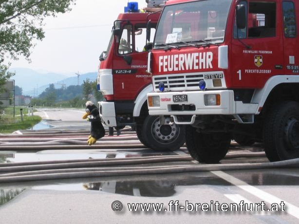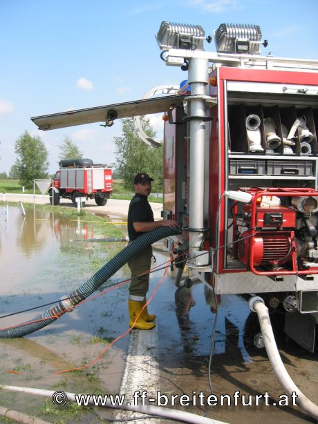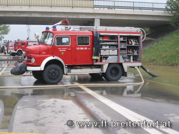 Die Feuerwehr Breitenfurt, im 2. Zug als 2. Tank II/14, fuhr mit dem TANK 2 auf die S5, wo sie im Bereich Stratzdorf Auspumparbeiten durchführten. Da unser PUMPE für Auspumparbeiten recht gut ausgerüstet ist, führ es zur Unterstützung der Bereitschaft mit in das Katastrophengebiet.